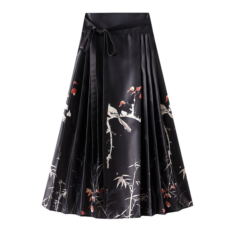 High-waisted Slimming Casual Pleated Skirt Mid-length Skirt with Belt