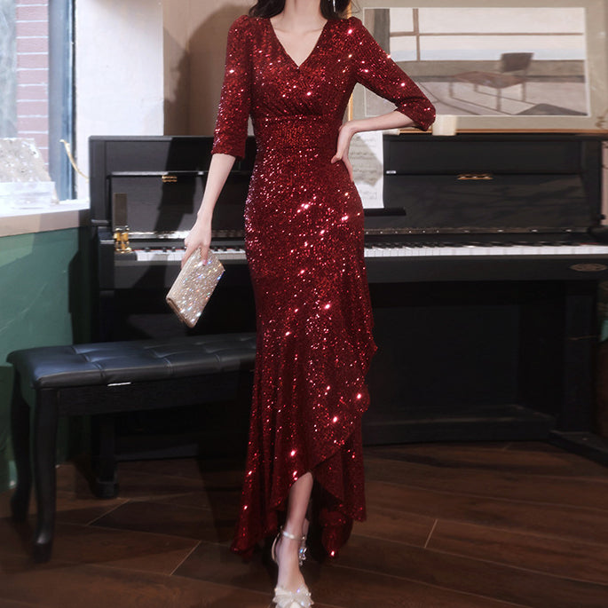 Banquet Evening Dress Feminine Mermaid Sequin Long Sleeve Dress