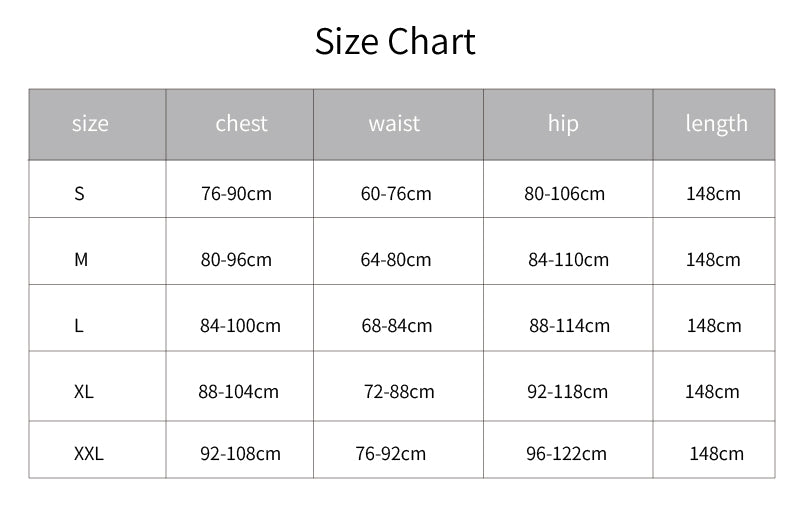 | 155-160cm | S | S | S | M | L | L | XL | XXL | XXL | 3XL | 3XL/4XL |