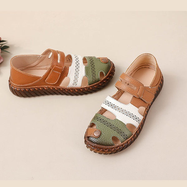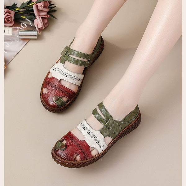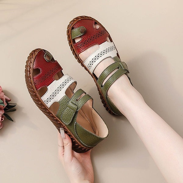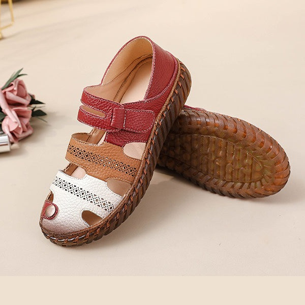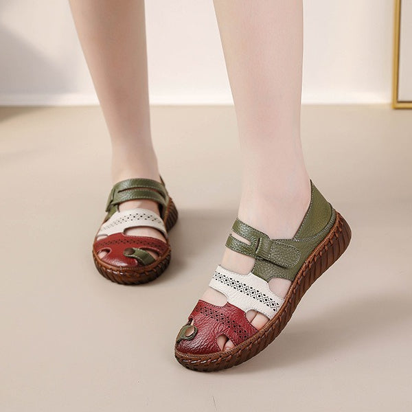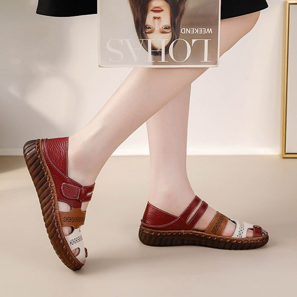 Designed for all-day comfort, these genuine leather sandals combine orthopedic support with stylish details. The full-grain leather upper features breathable cut-outs and adjustable hook-and-loop straps, while the flexible rubber sole provides superior traction and cushioning. Perfect for travel, casual outings, or light walks, these sandals accommodate wide feet and swollen ankles with their roomy toe box.