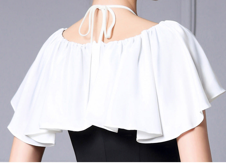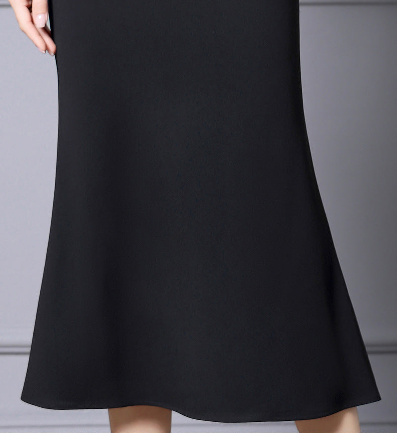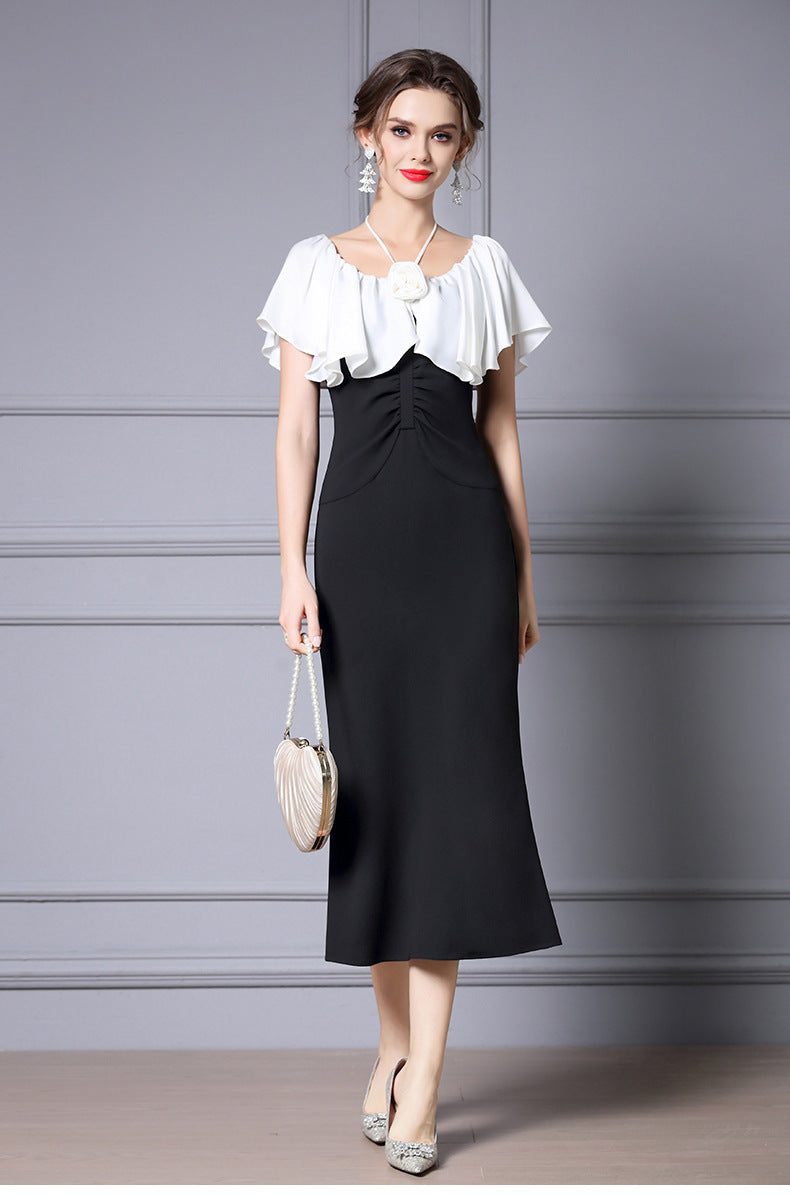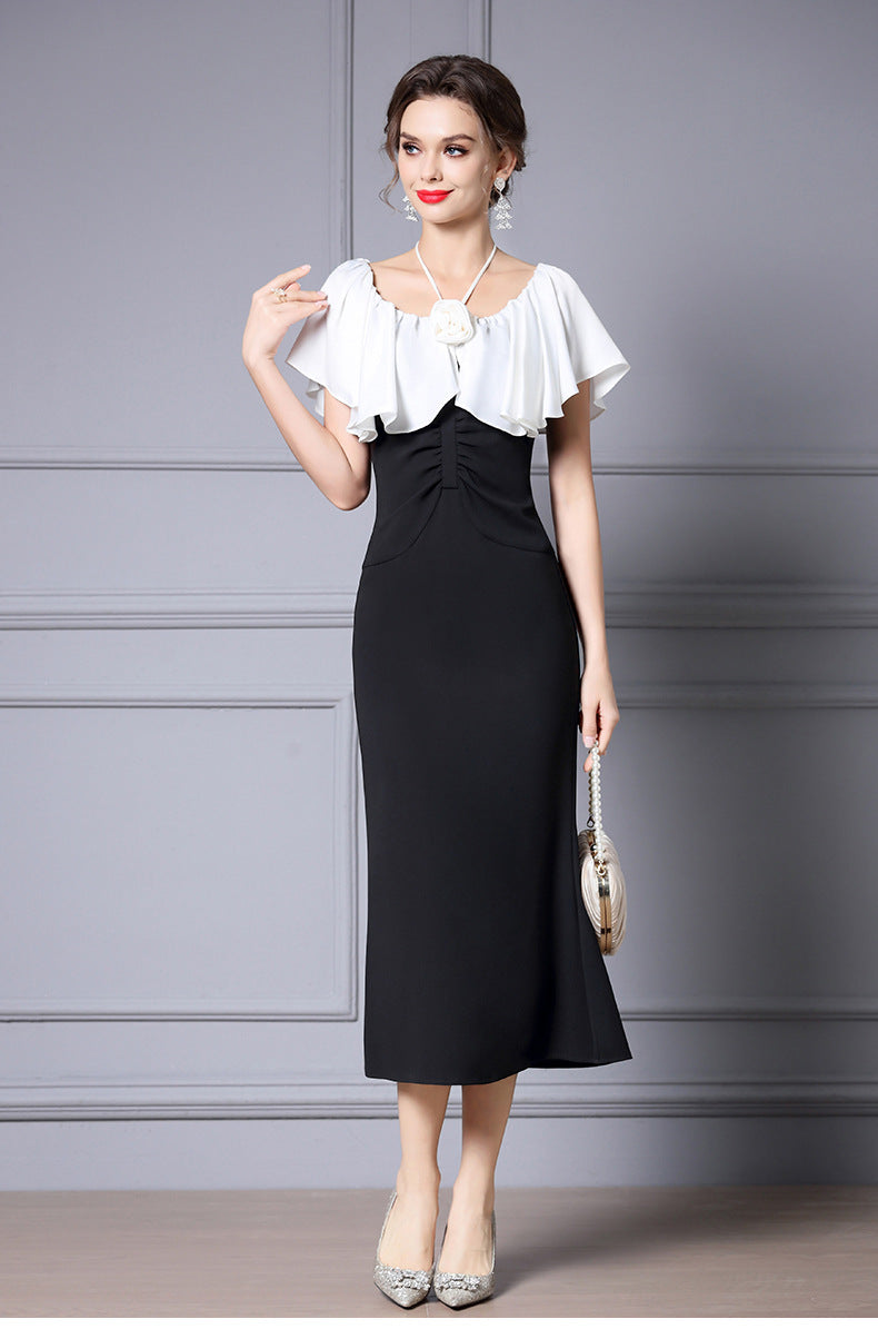 Elegant Black Color-Blocked Fishtail Dress with High Waist