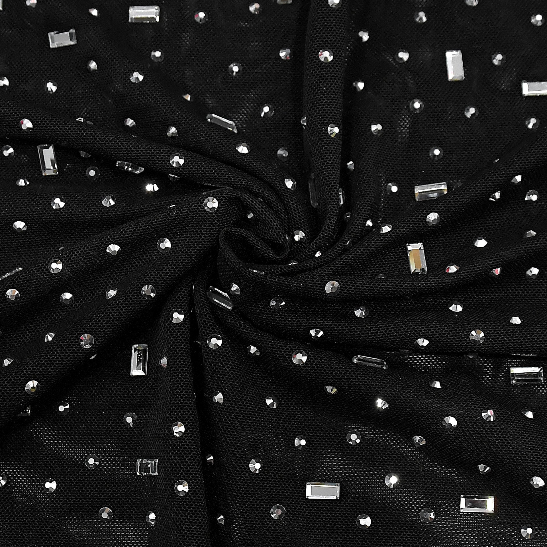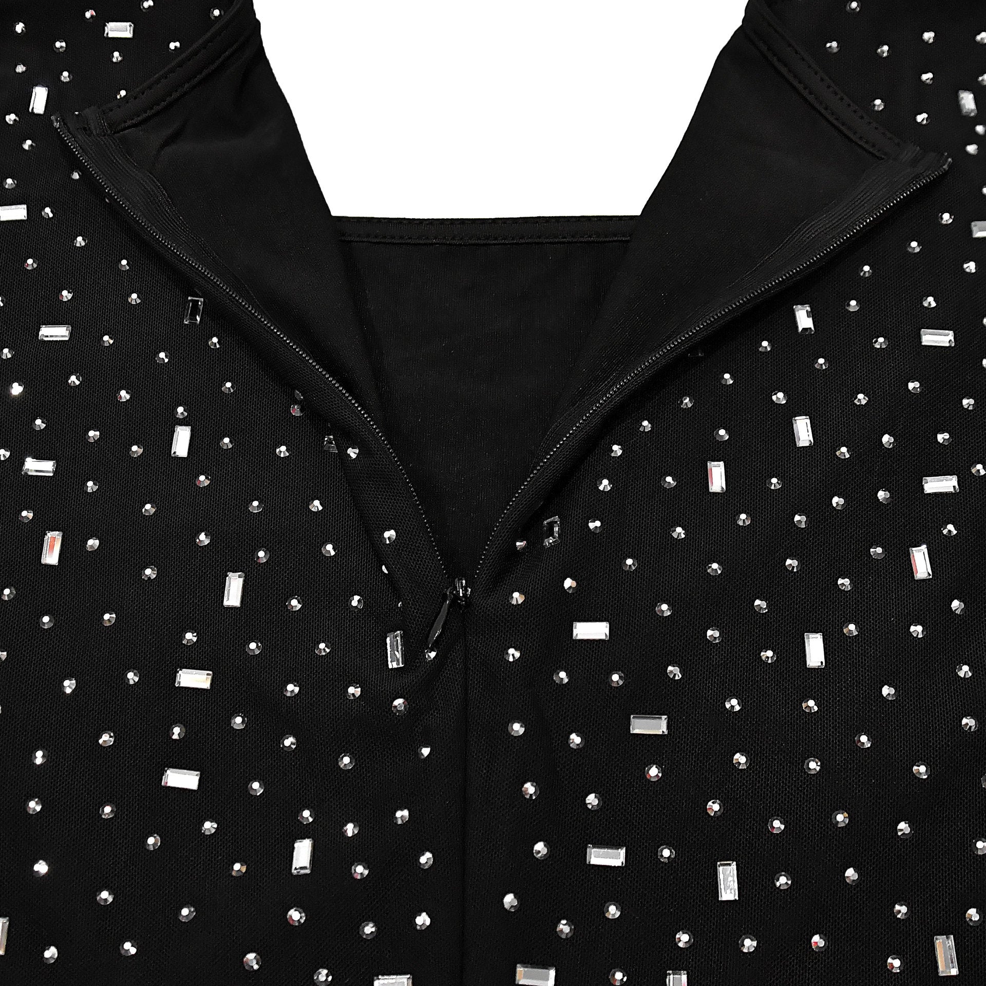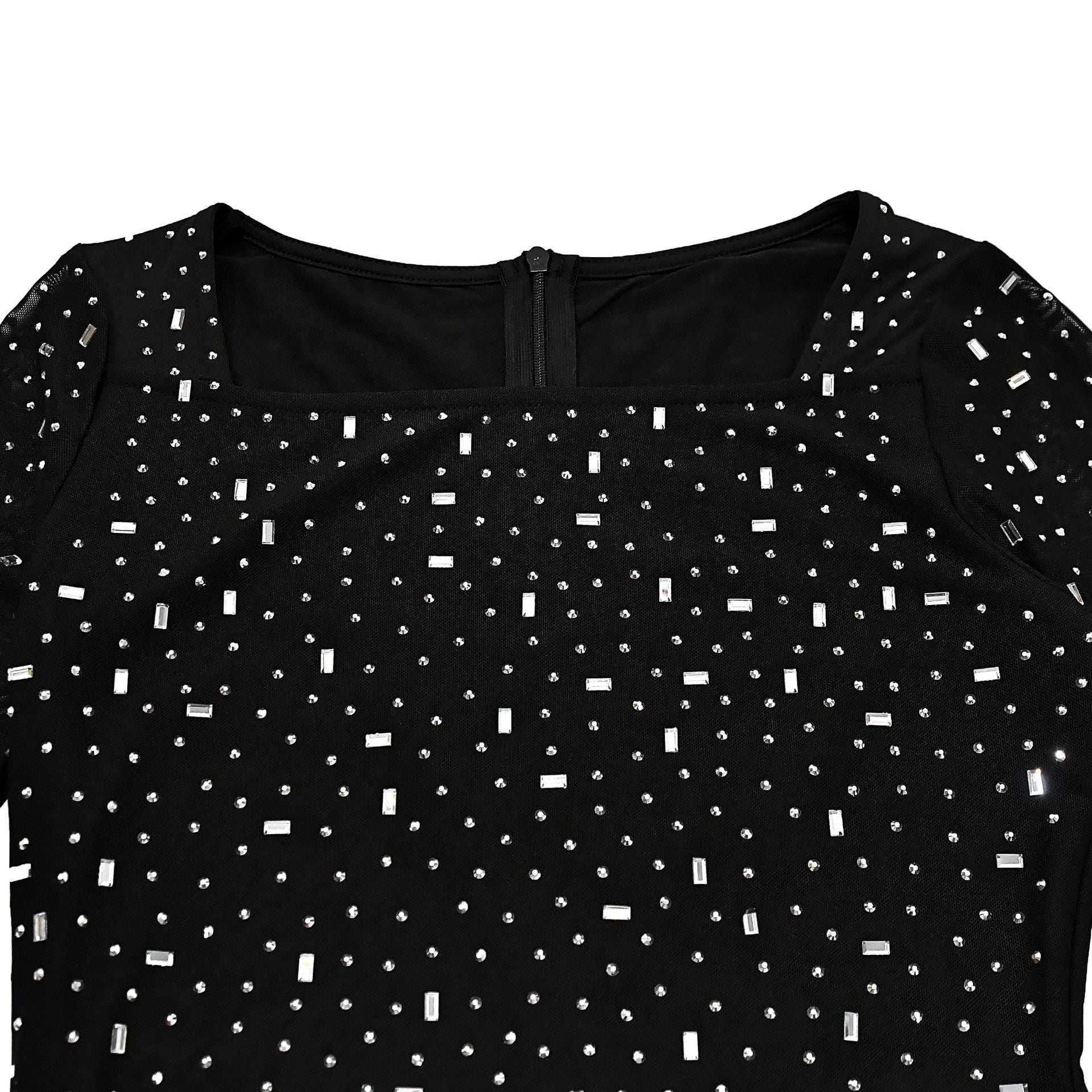 Command attention in this crystal-embellished maxi dress featuring an elegant square neckline and dramatic mermaid hem. Crafted from premium 85% polyester/15% spandex blend with soft mesh lining (70D net fabric), the stretch fabric drapes beautifully while long sleeves add sophistication. Ideal for black-tie events, gala dinners, or as a standout wedding guest dress. Style with statement earrings and metallic heels for timeless glamour.