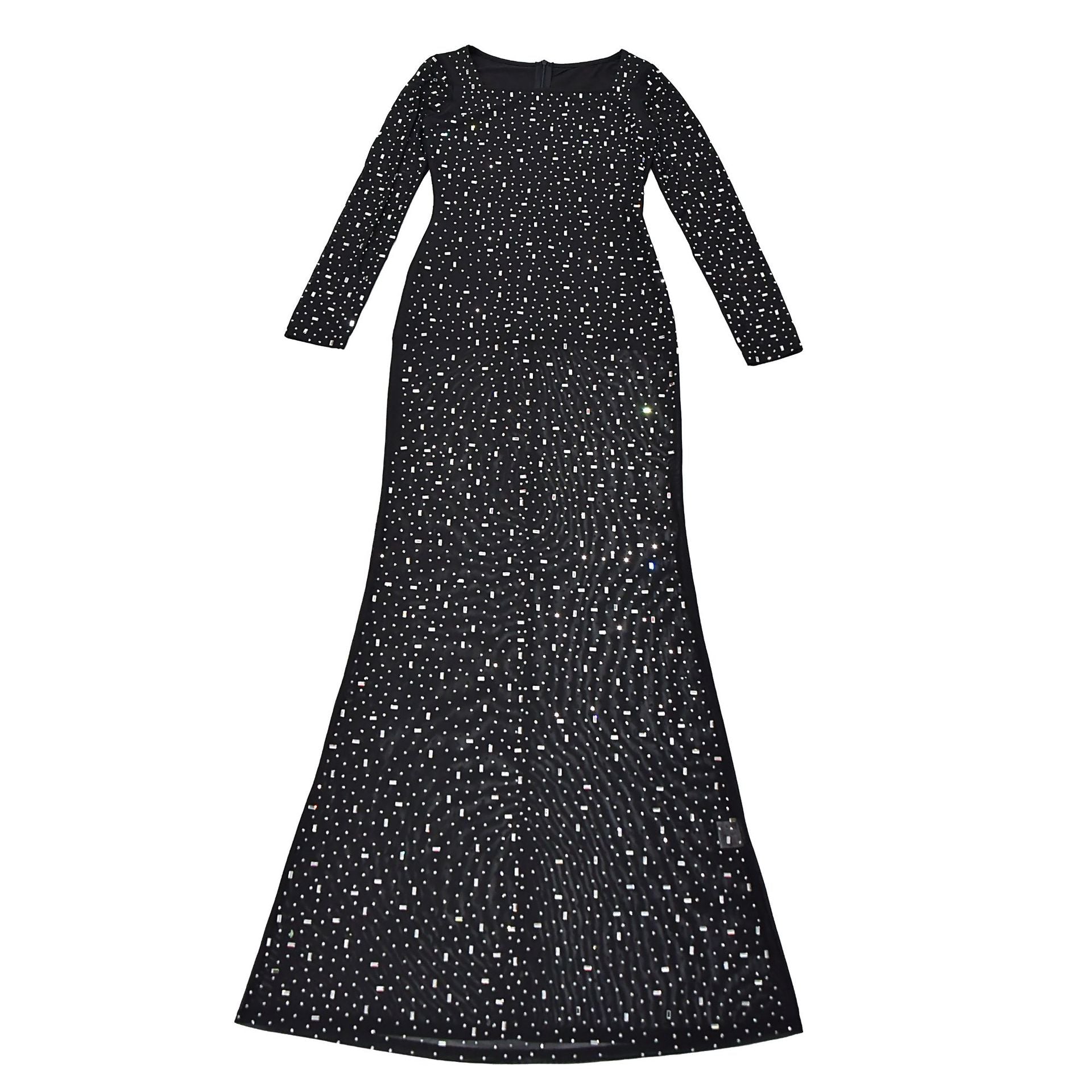 Elegant Crystal Embellished Maxi Dress Long Sleeve Square Neck Formal