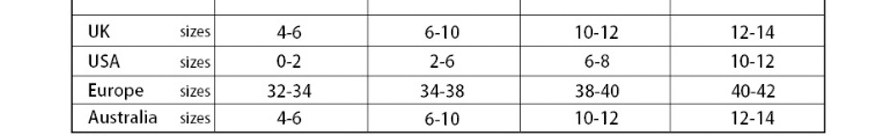 | 161-165cm | S | S | S/M | M | M | L | L/XL | XXL | XXL | 3XL | 3XL/4XL |