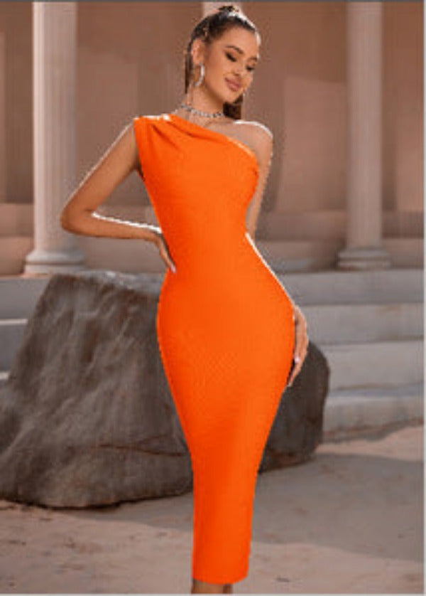 Elegant Women One Shoulder Dress Sleeveless Body Fit Evening Sequined Dress