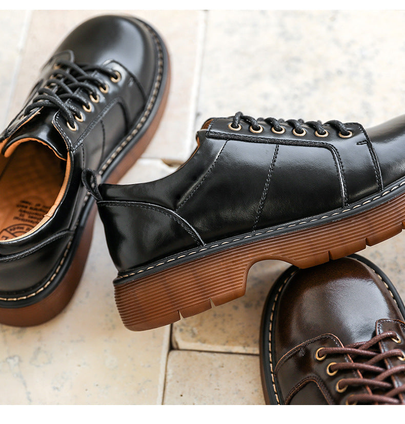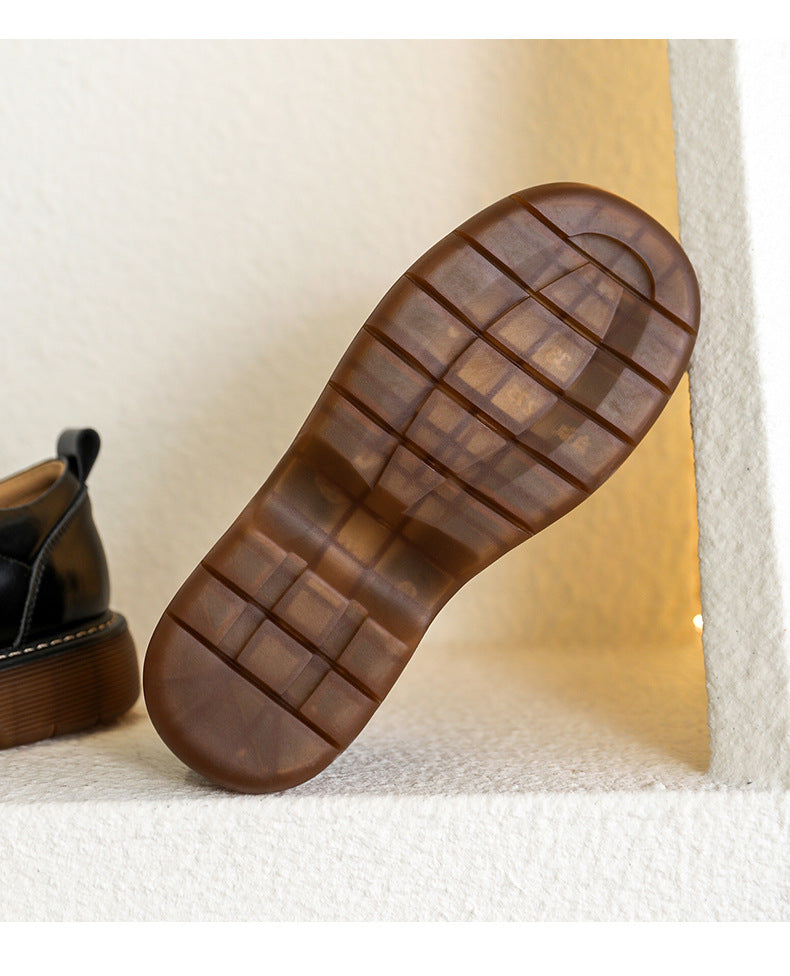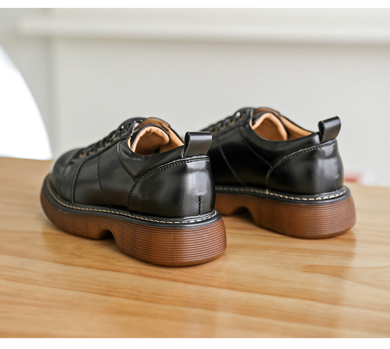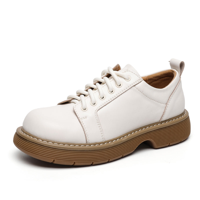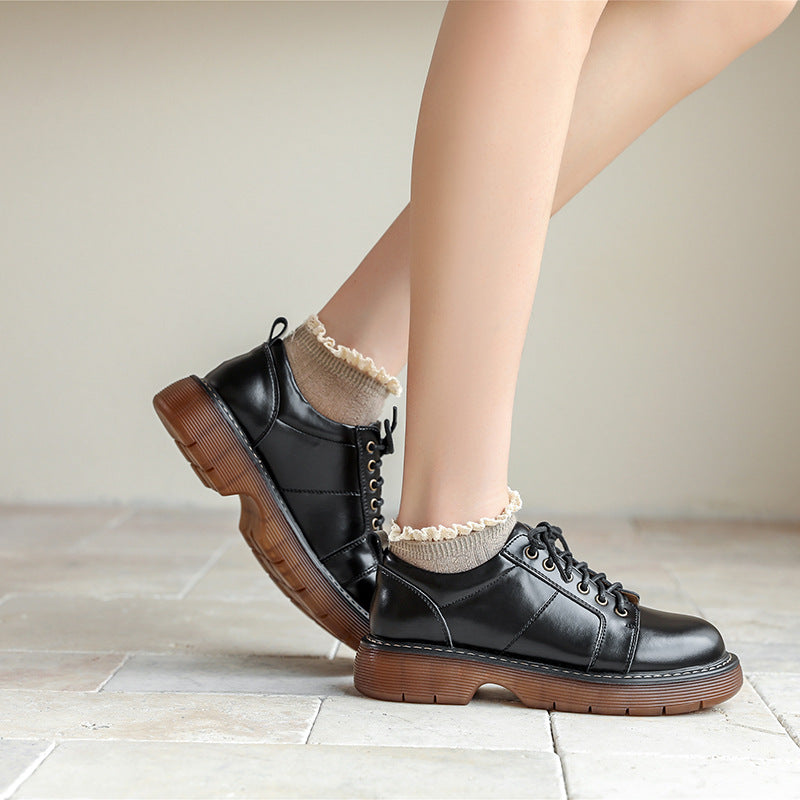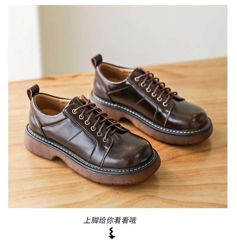 Genuine Brown Small Leather Shoes Retro Lace Up Women's Shoes