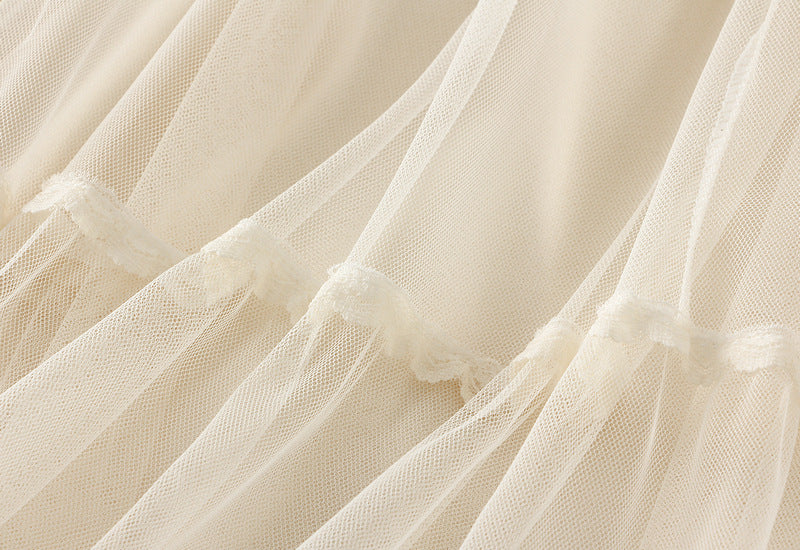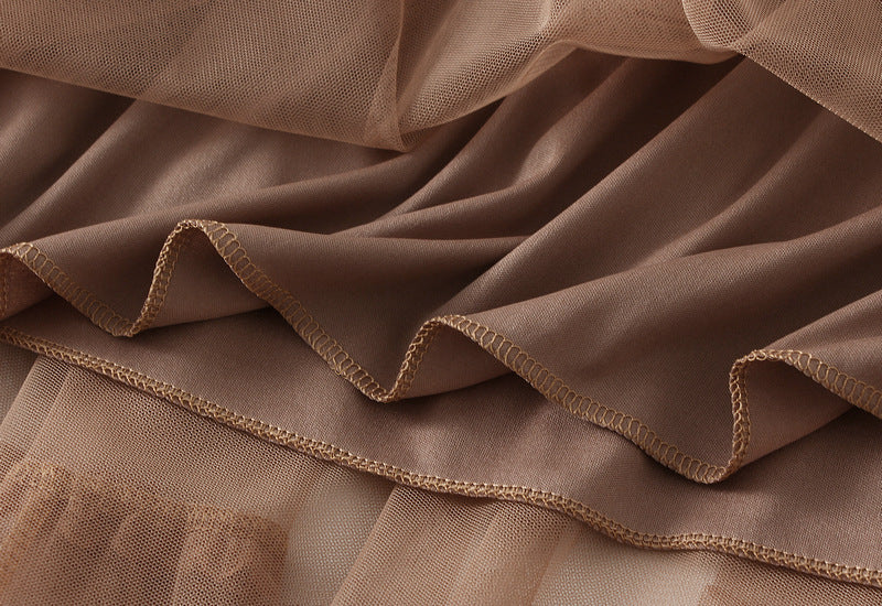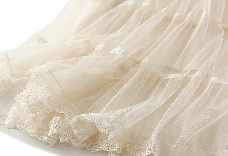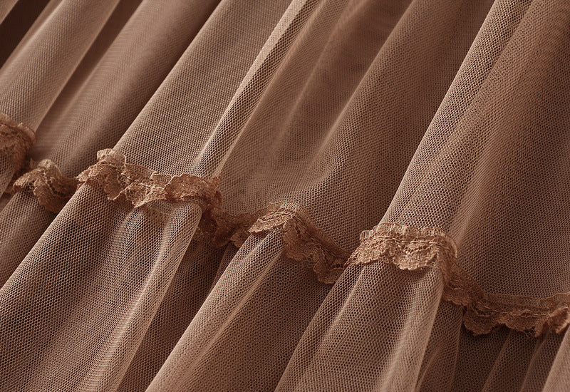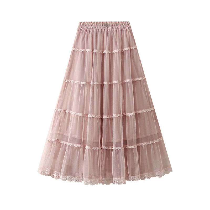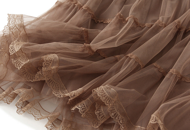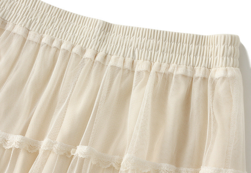 High-waisted Mid-length Multi-layered Mesh Patchwork Lace Skirt