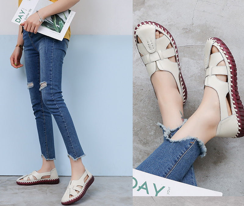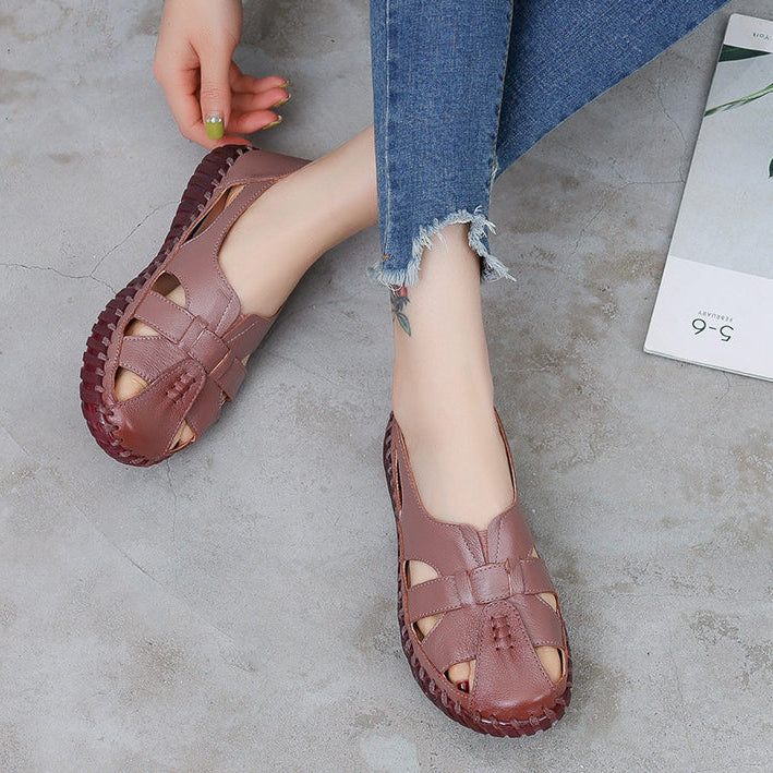 Leather Hollow Women's Shoes Comfortable Soft Bottom Non-slip Flat Sandals