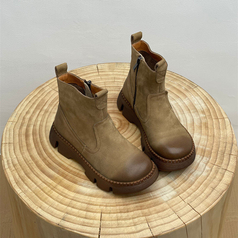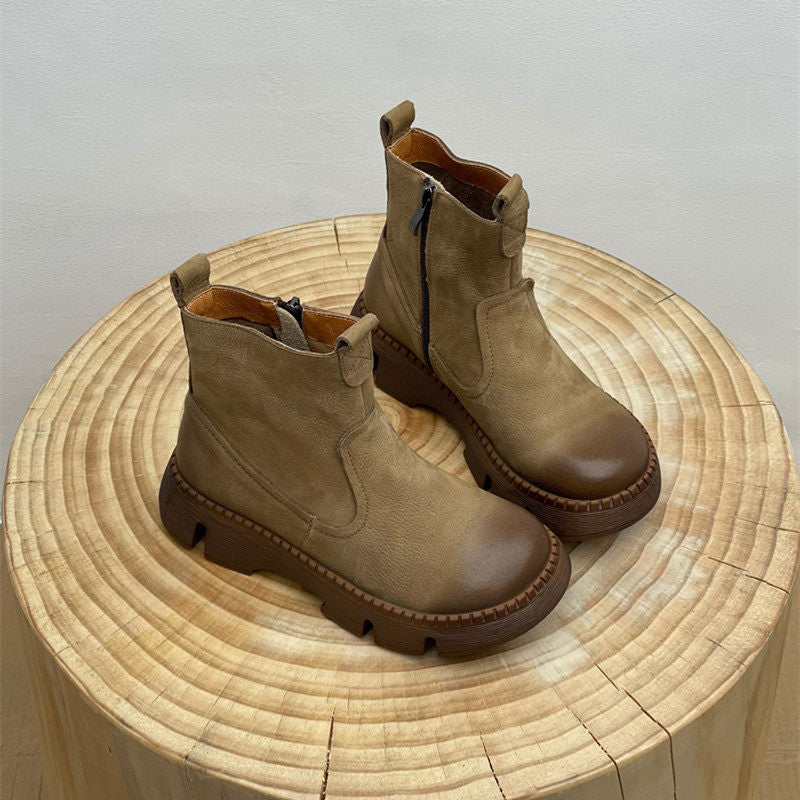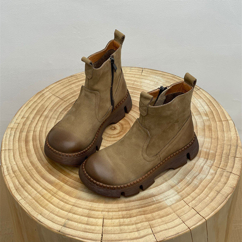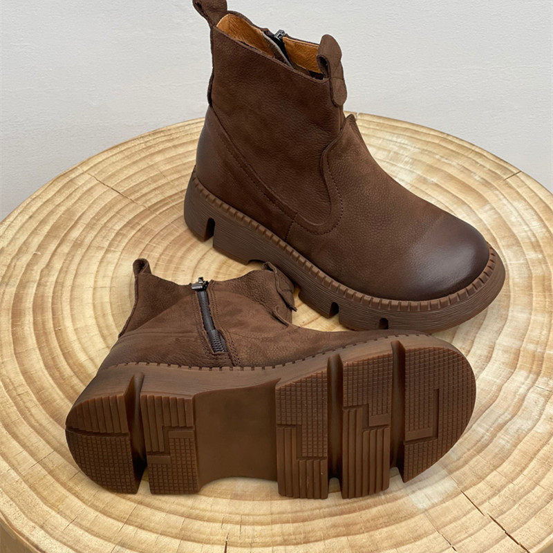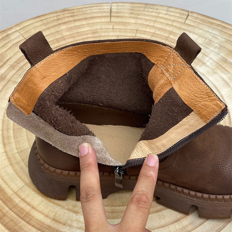 Leather Vintage Ankle Boots Round Toe Hand-stitched Comfortable All-match Women's Shoes