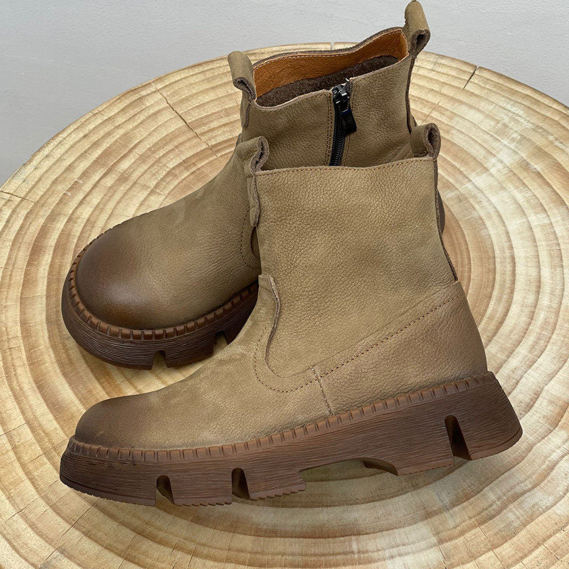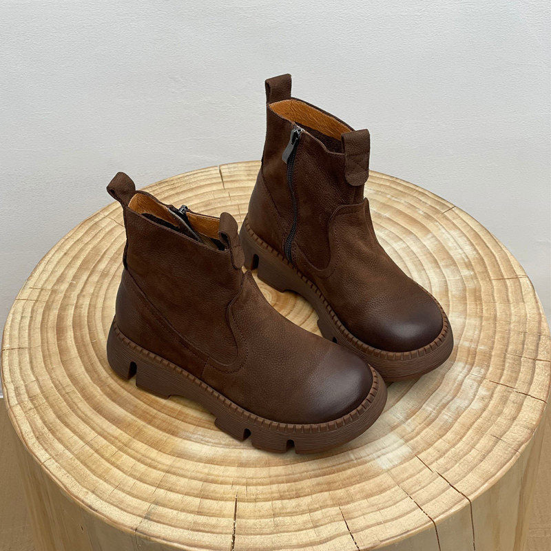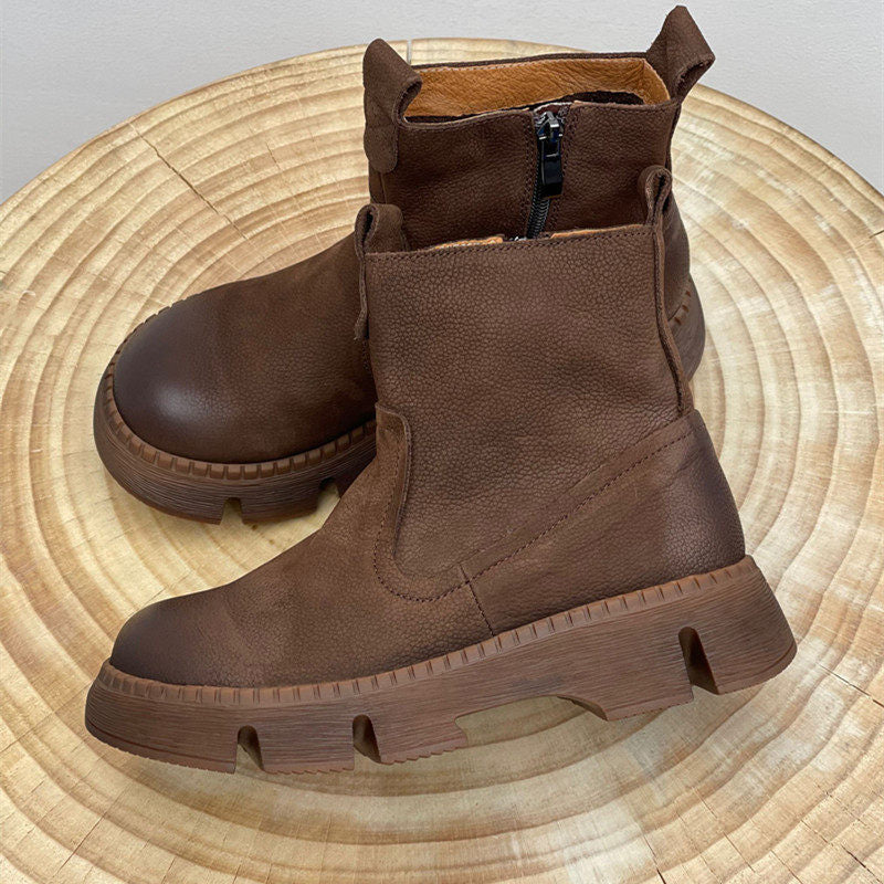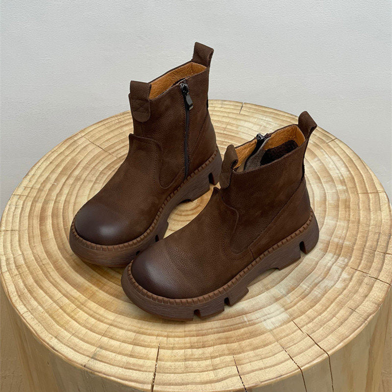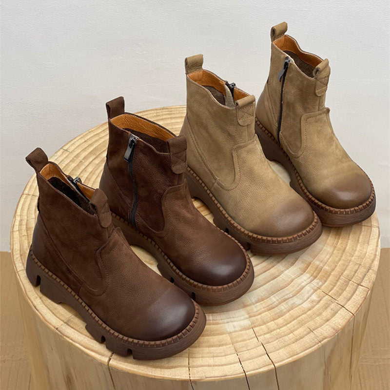 Leather Vintage Ankle Boots Round Toe Hand-stitched Comfortable All-match Women's Shoes