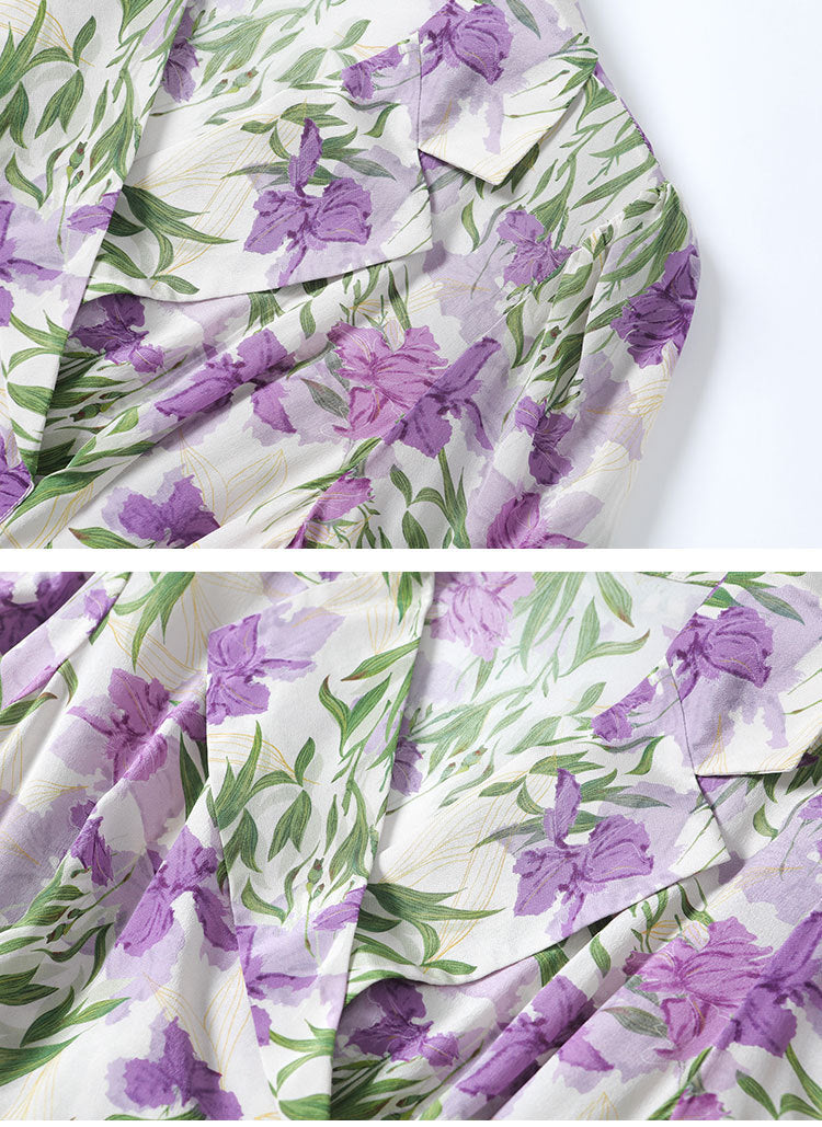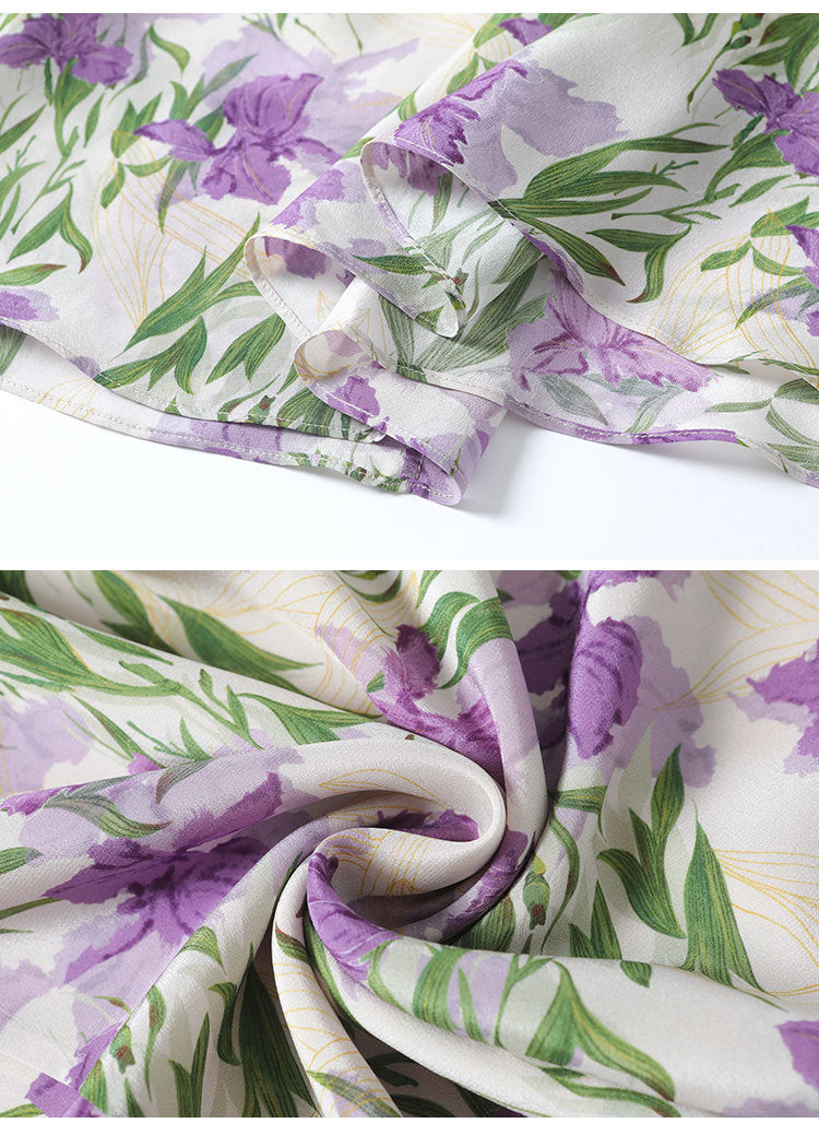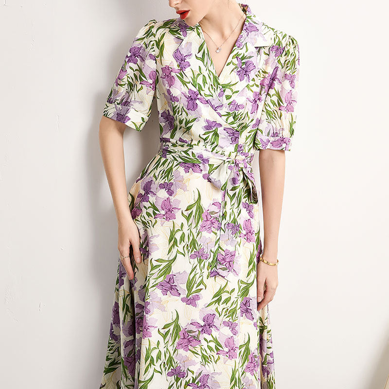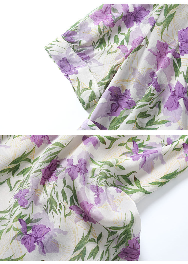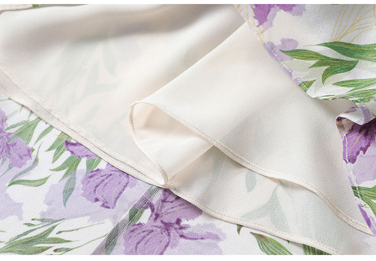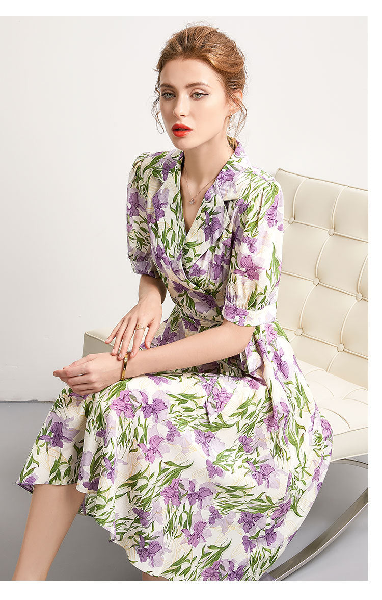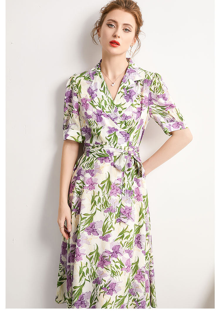 Mulberry Silk Mid-length French Dress Summer Waist Short-sleeved Printed Dress