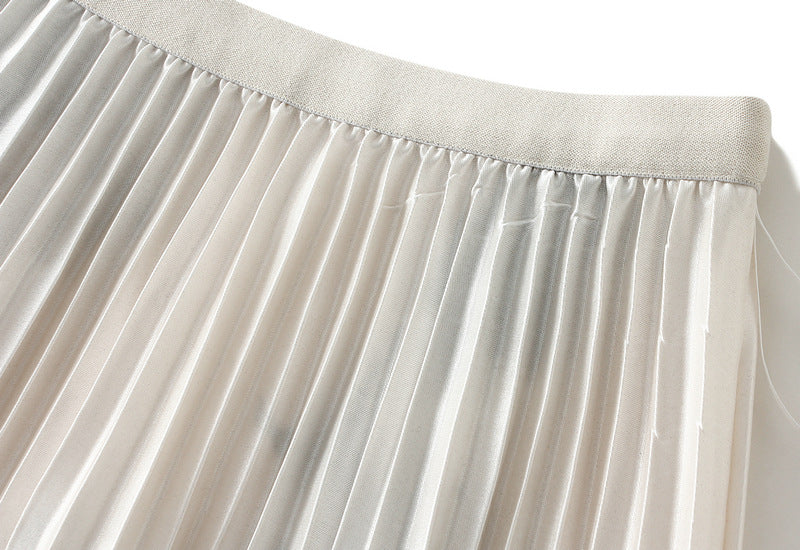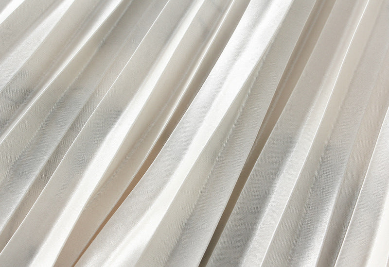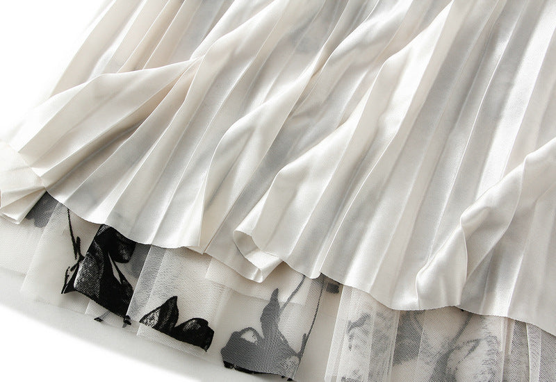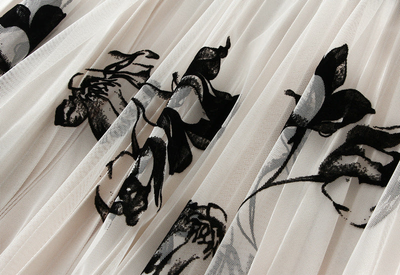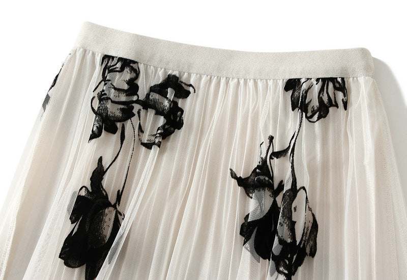 Flocked Flower Mesh Skirt Reversible Pleated Skirt Mid-length Skirt