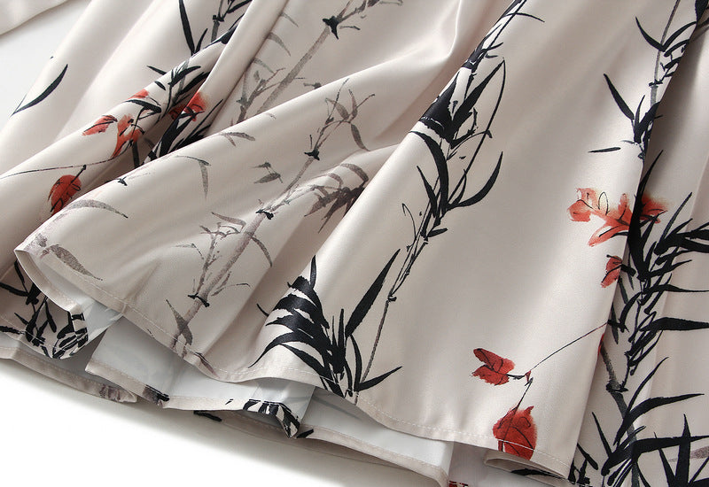 Retro High End Printed Pleated Skirt Ethnic Style