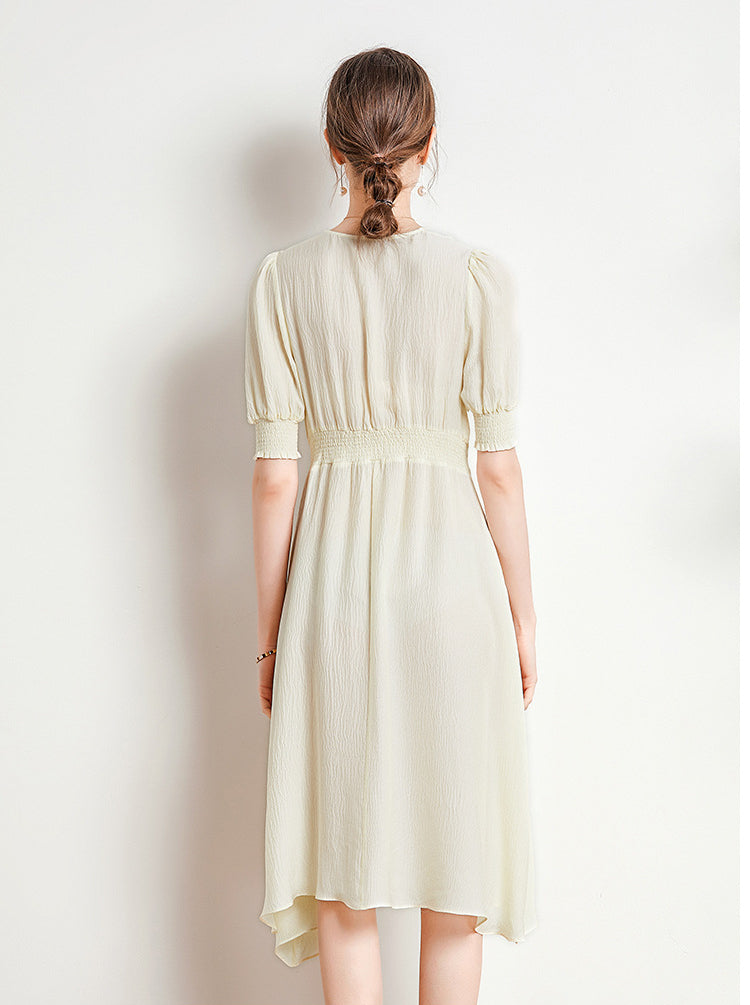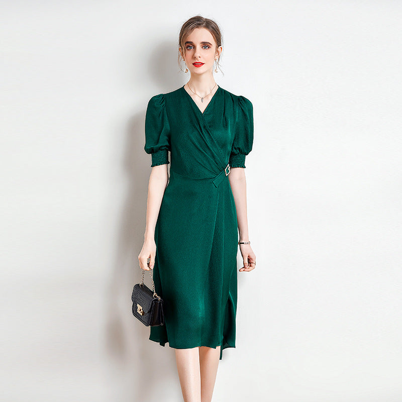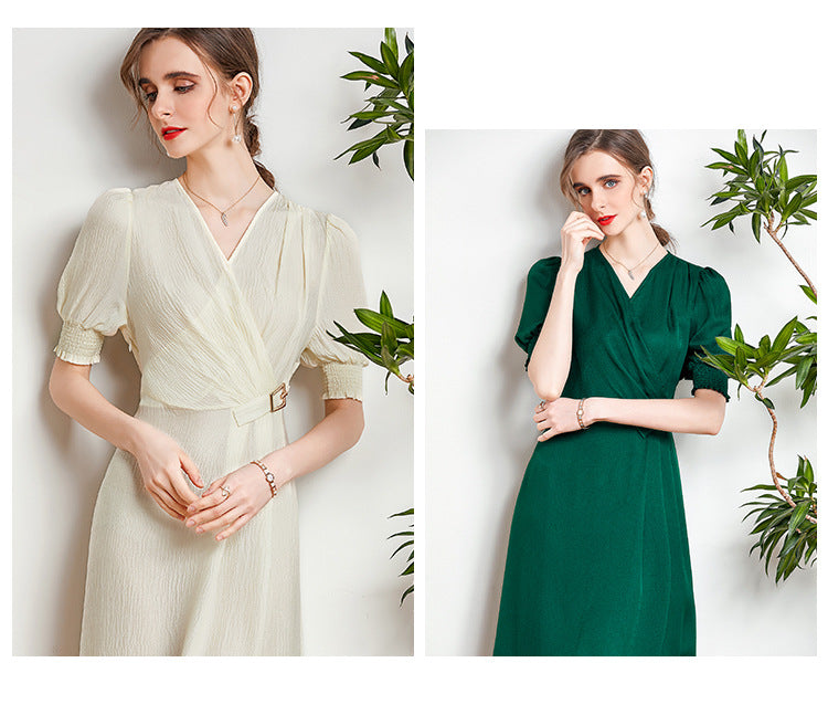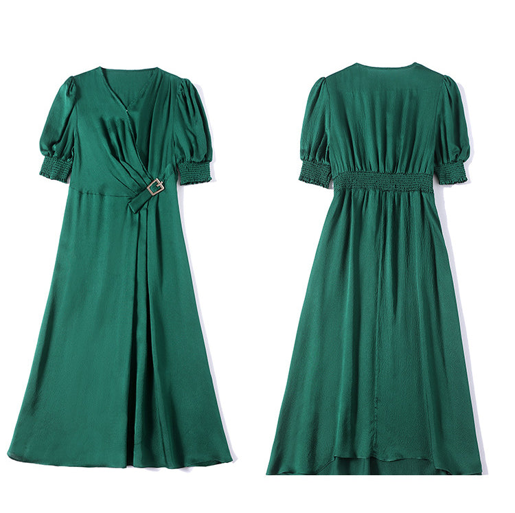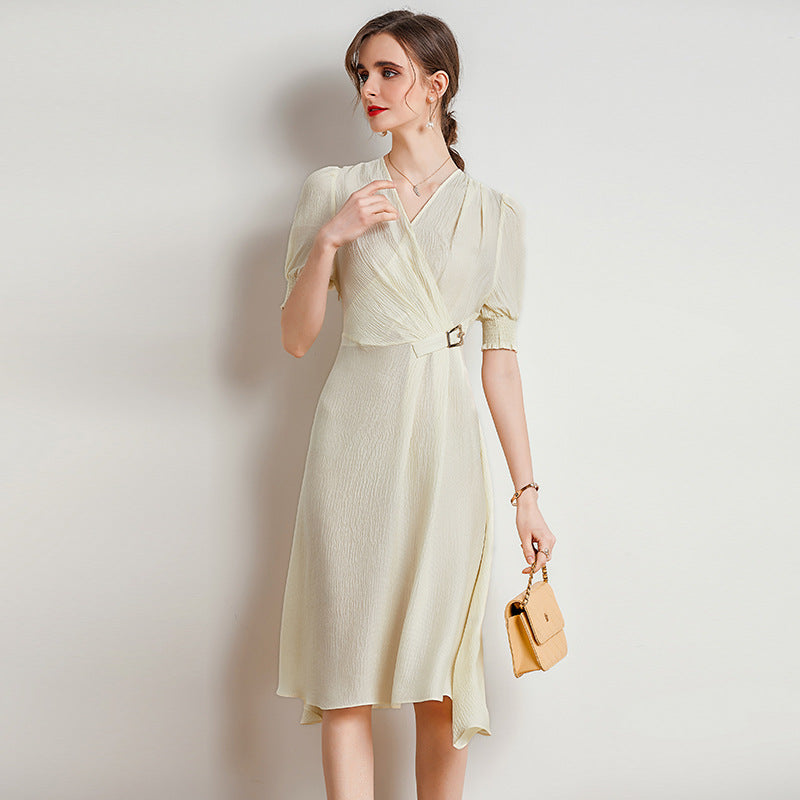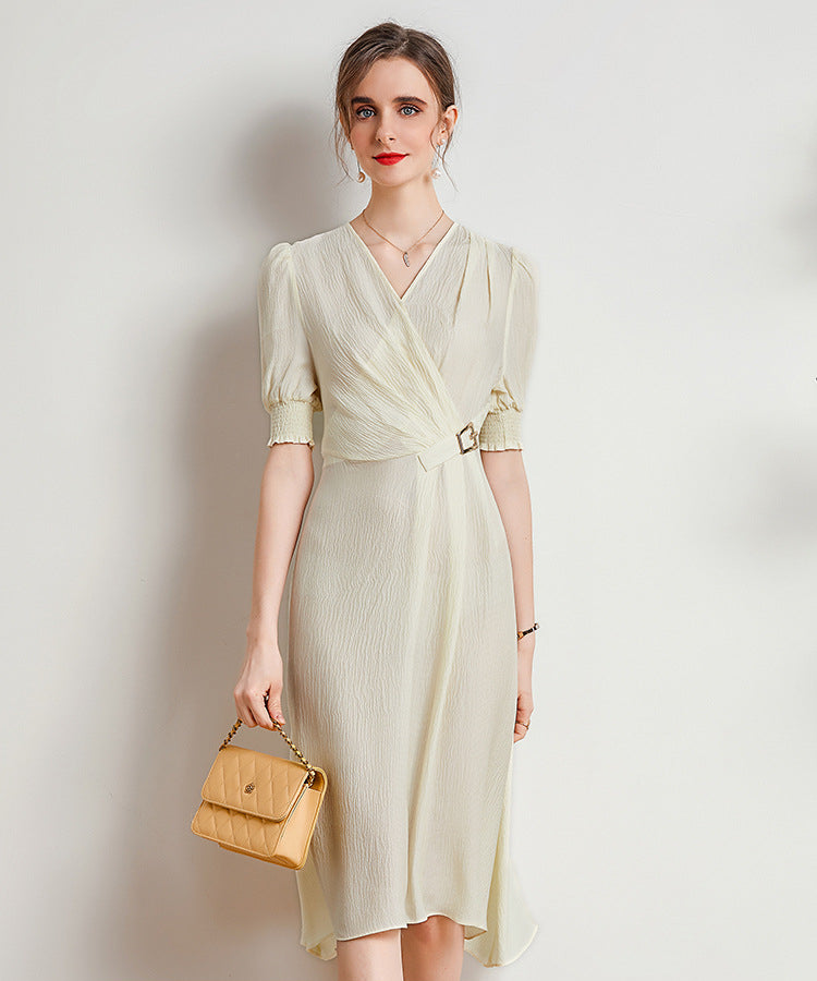 Spring and Summer Silk Dress V-neck Slim Waist Dress