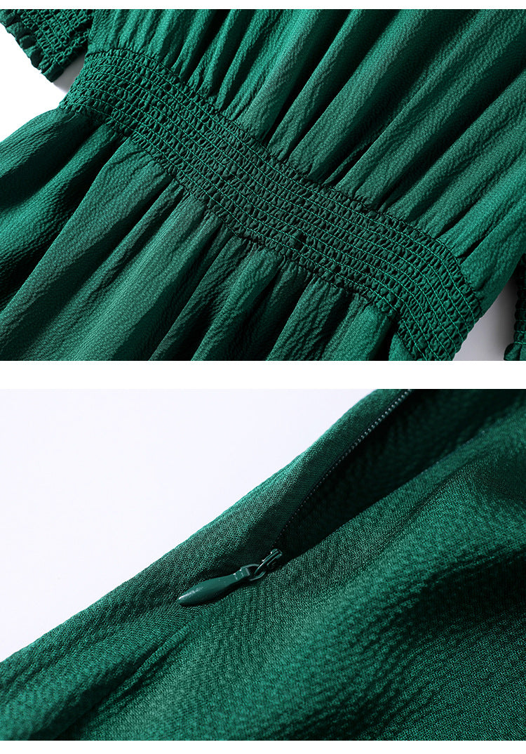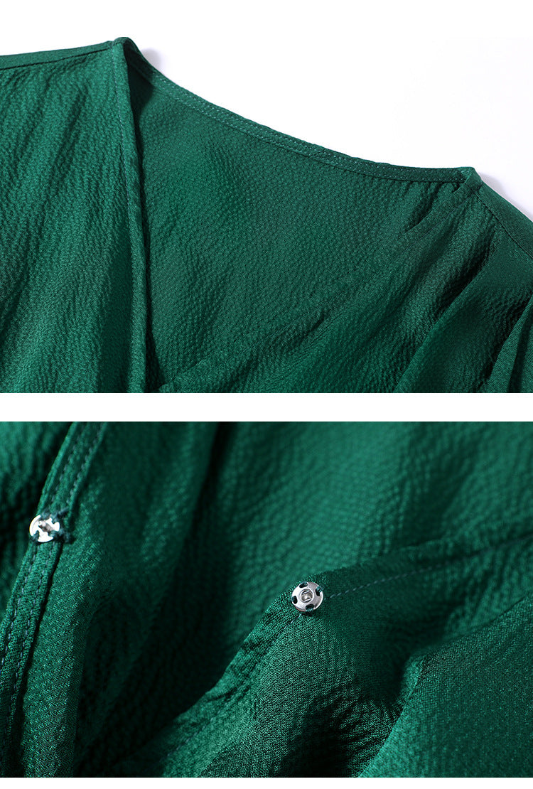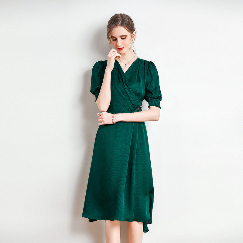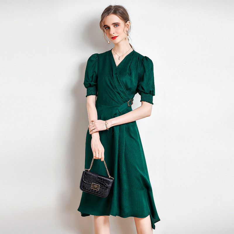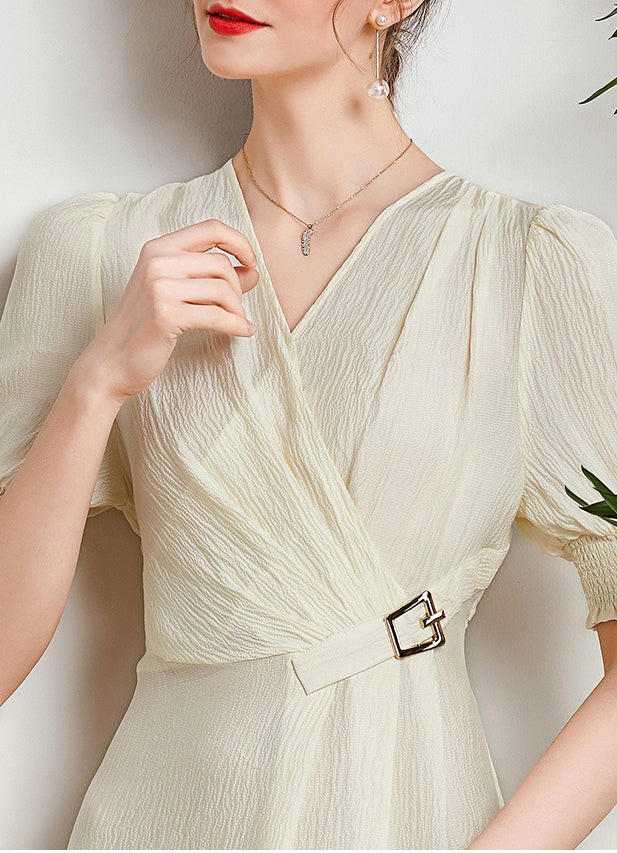 Spring and Summer Silk Dress V-neck Slim Waist Dress