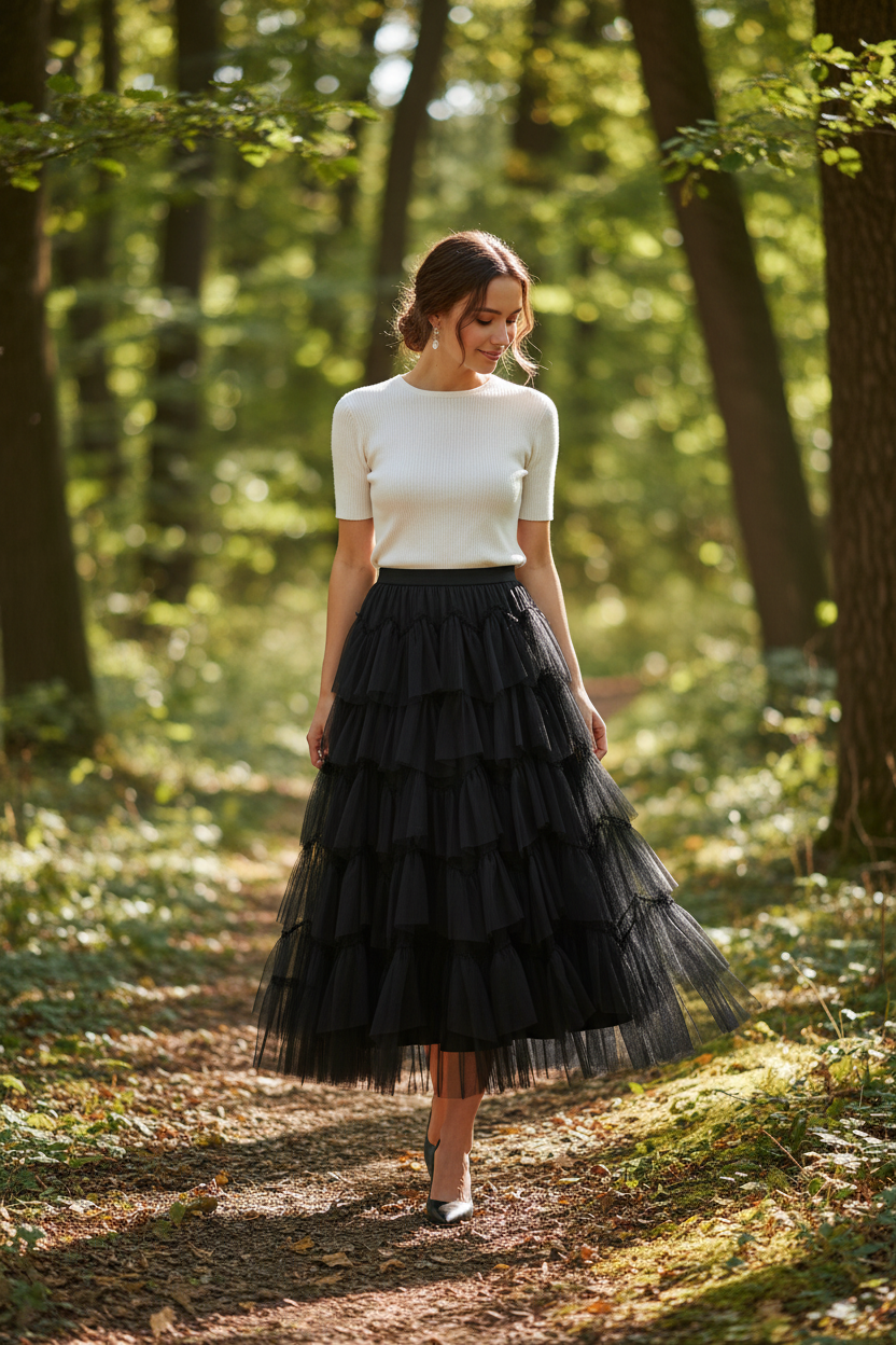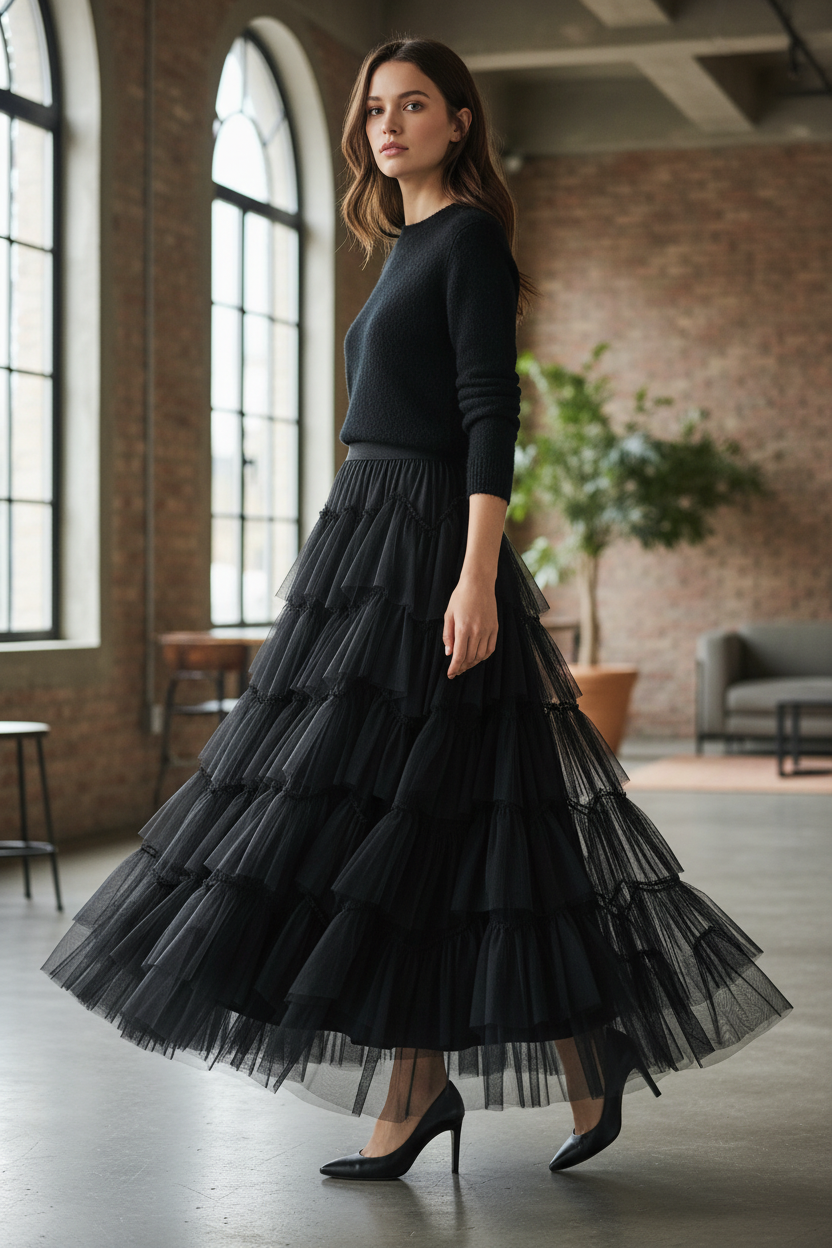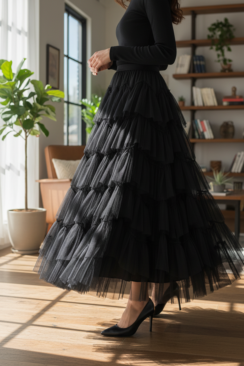 Tiered Princess Tulle Maxi Skirt in Soft Mesh