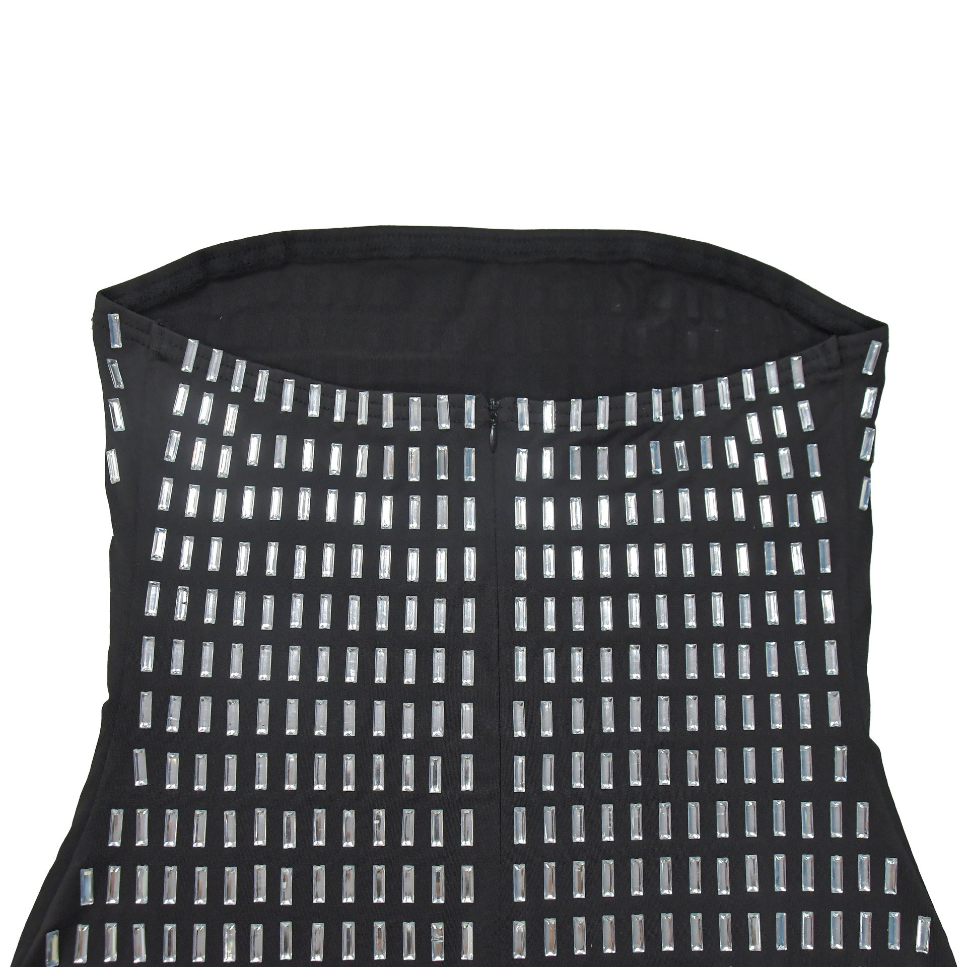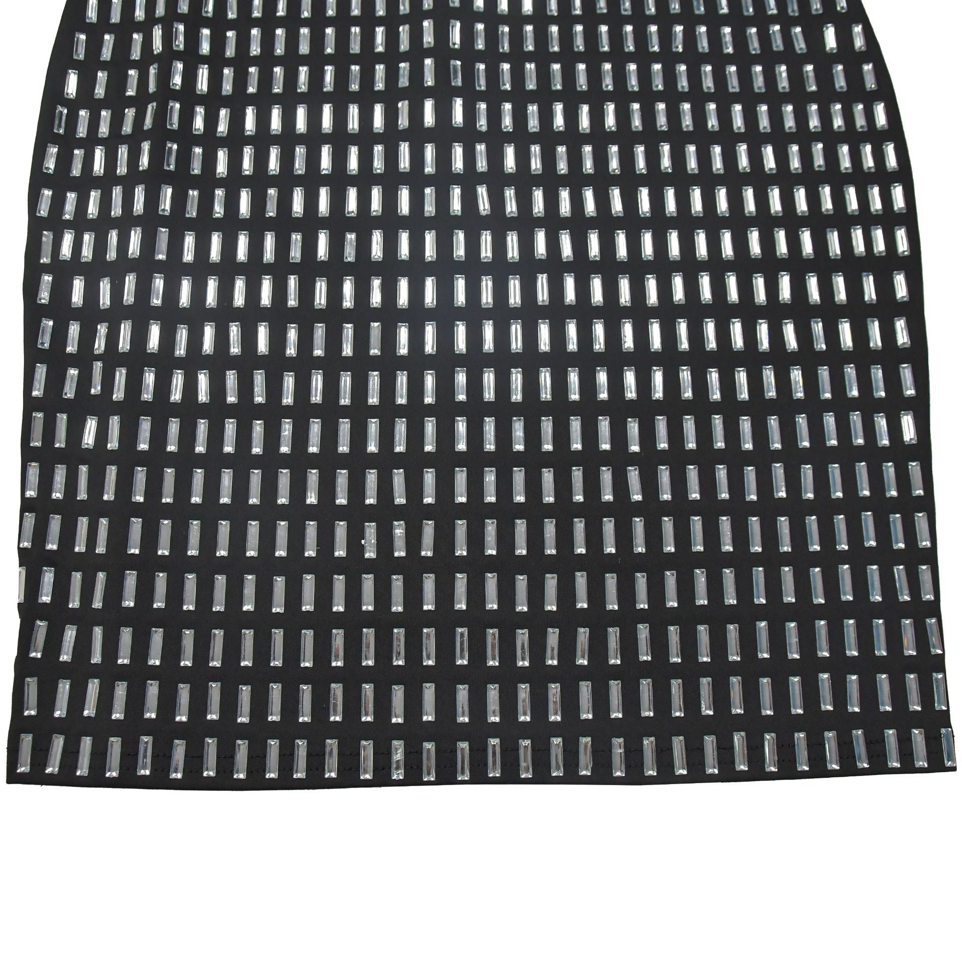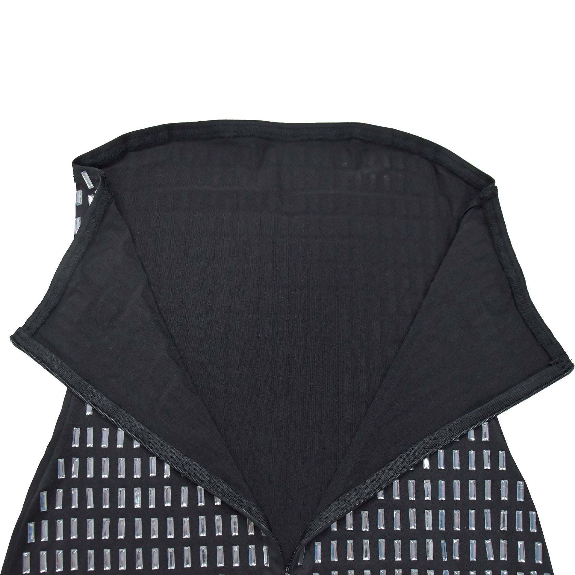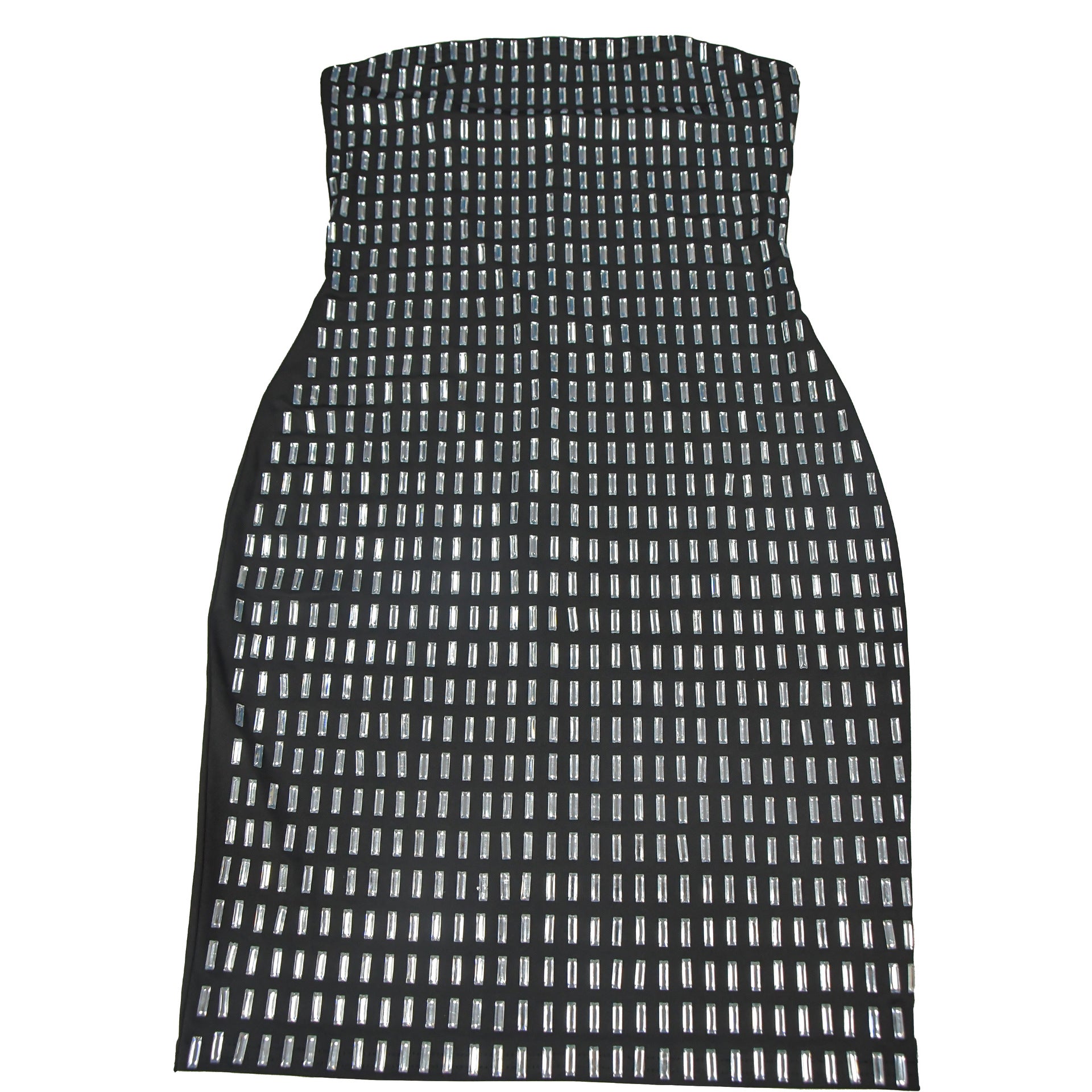 Steal the spotlight in this jaw-dropping crystal mesh mini dress featuring a daring open back and bandeau neckline. Crafted from premium 87% polyester/13% spandex milky silk fabric, the bodycon silhouette hugs curves with geometric crystal embroidery cascading across the torso. The high waist seam elongates legs while the thigh-high slit adds movement - perfect for cocktail parties, date nights, or holiday soirées. Style with strappy heels and delicate jewelry for unforgettable glamour.