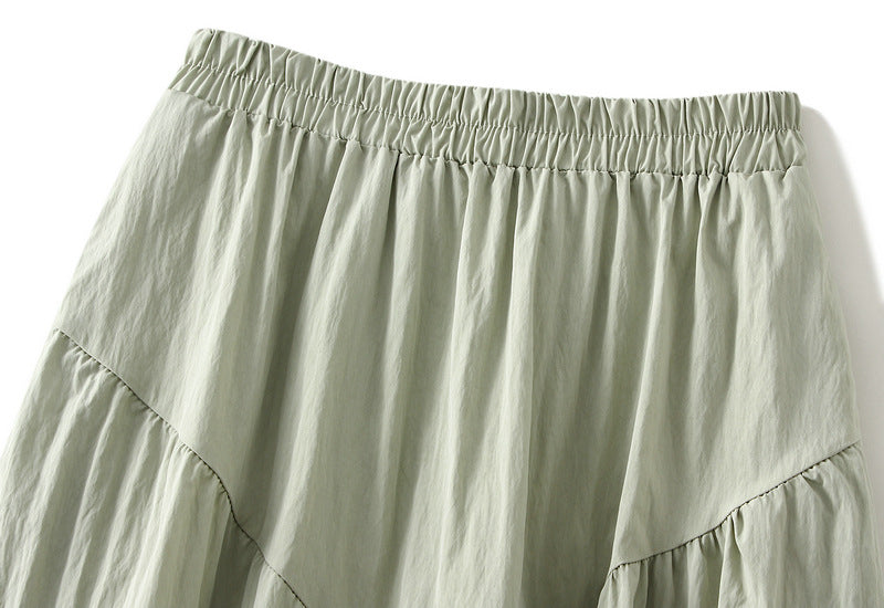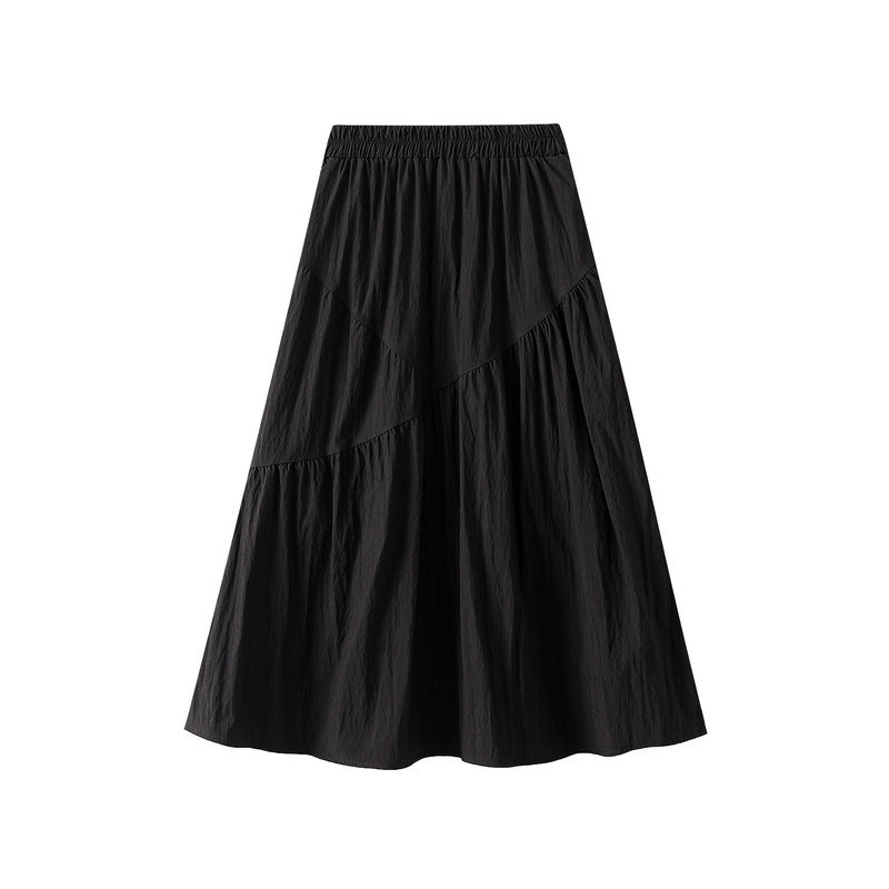 Summer Pleated Skirt High Waist Slimming Mid-length Skirt
