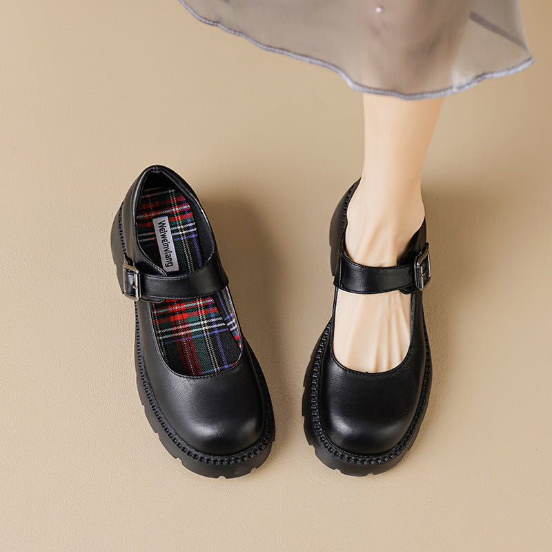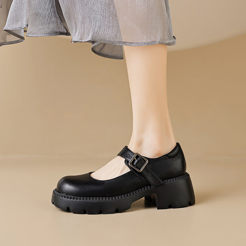 Thick Sole Mary Jane Shoes Round Toe Retro Women's Shoes