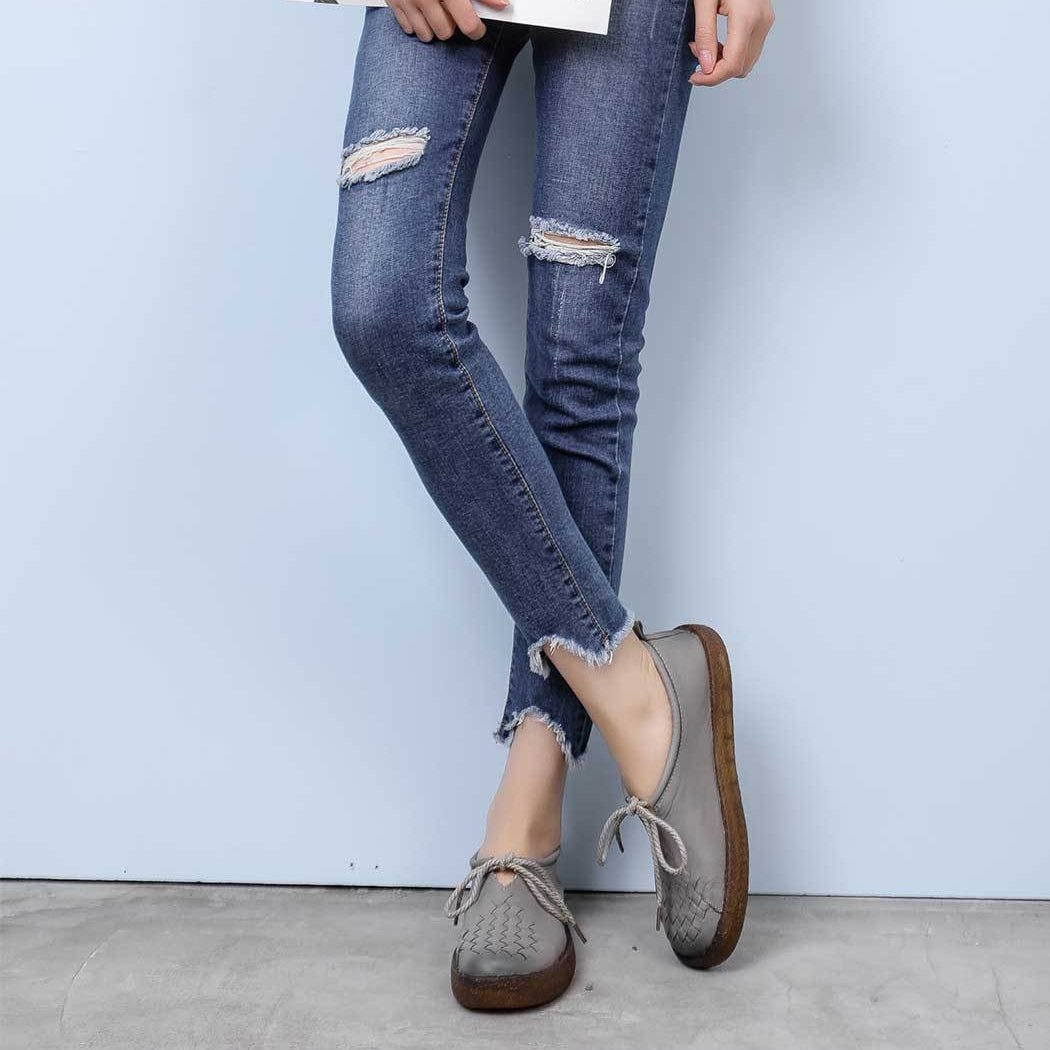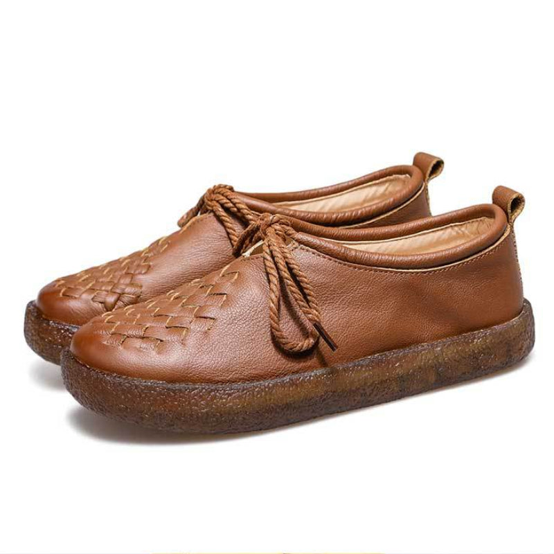 Women's Casual Leather Flat Shoes Soft Sole Woven Shoes
