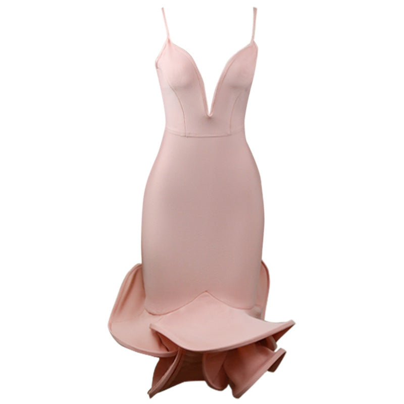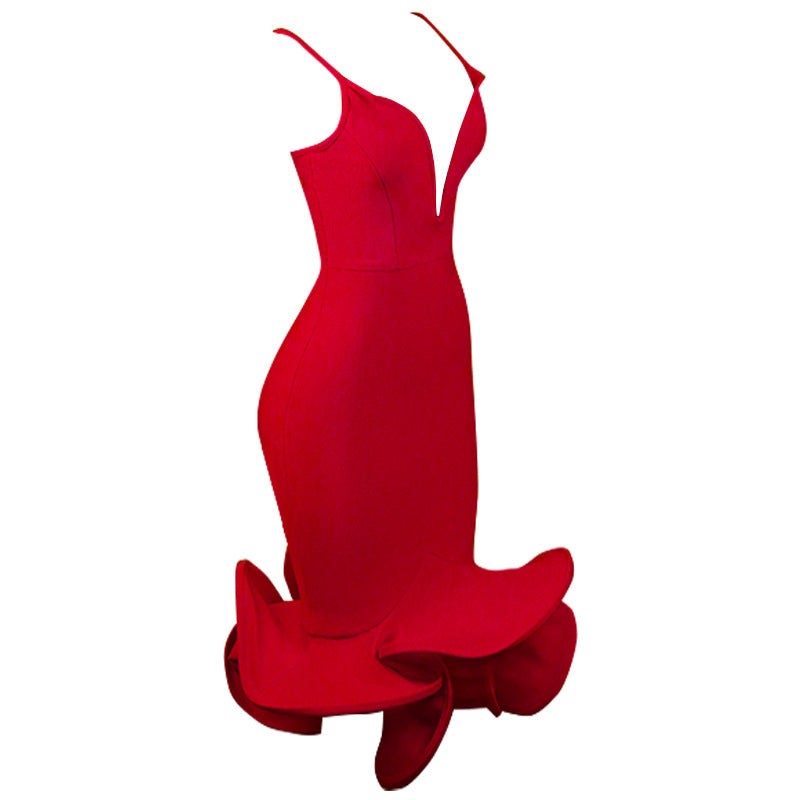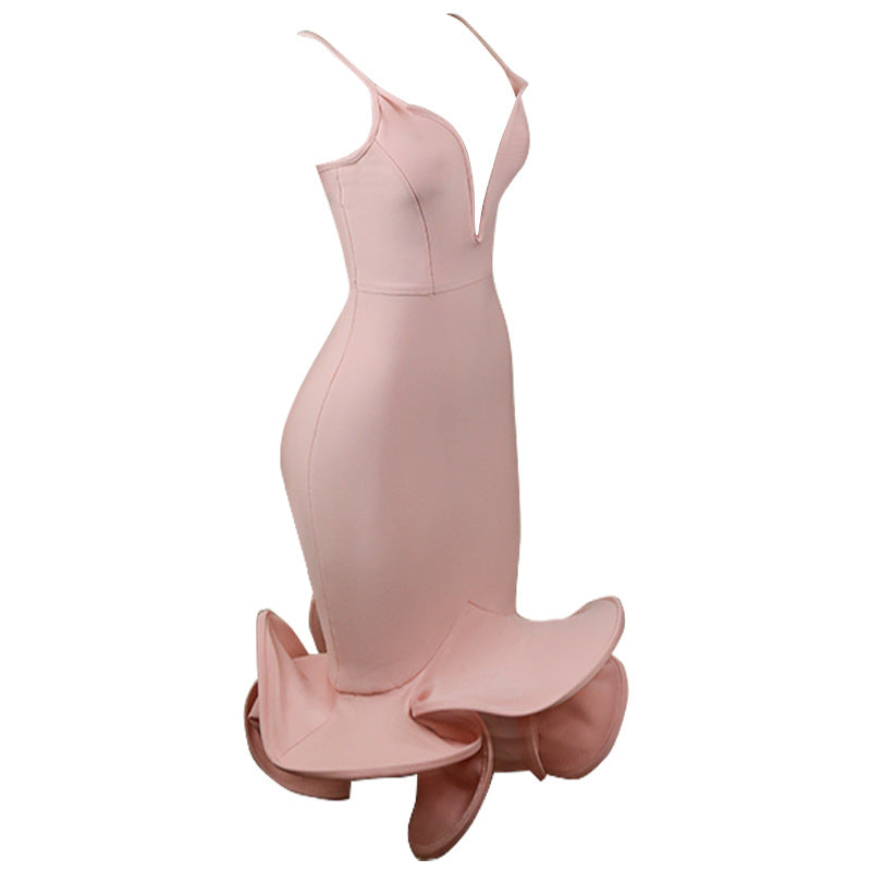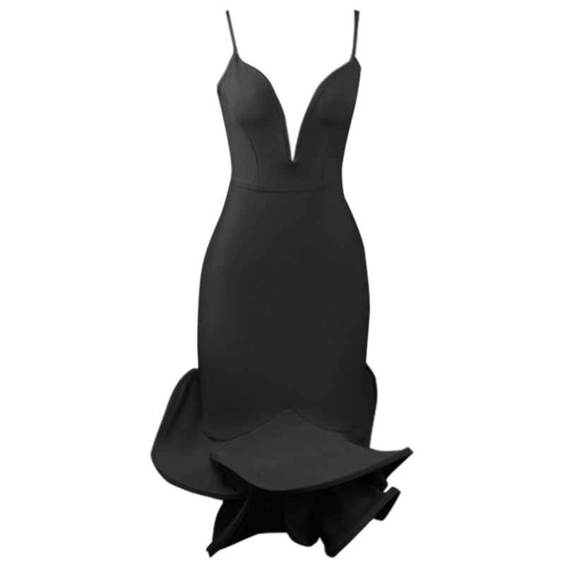 Women's Fashion Deep V Neck Evening Dress Tight Slim Dress