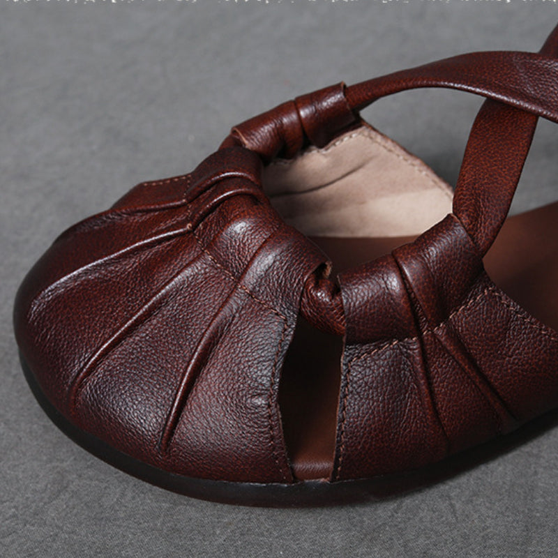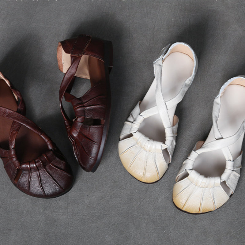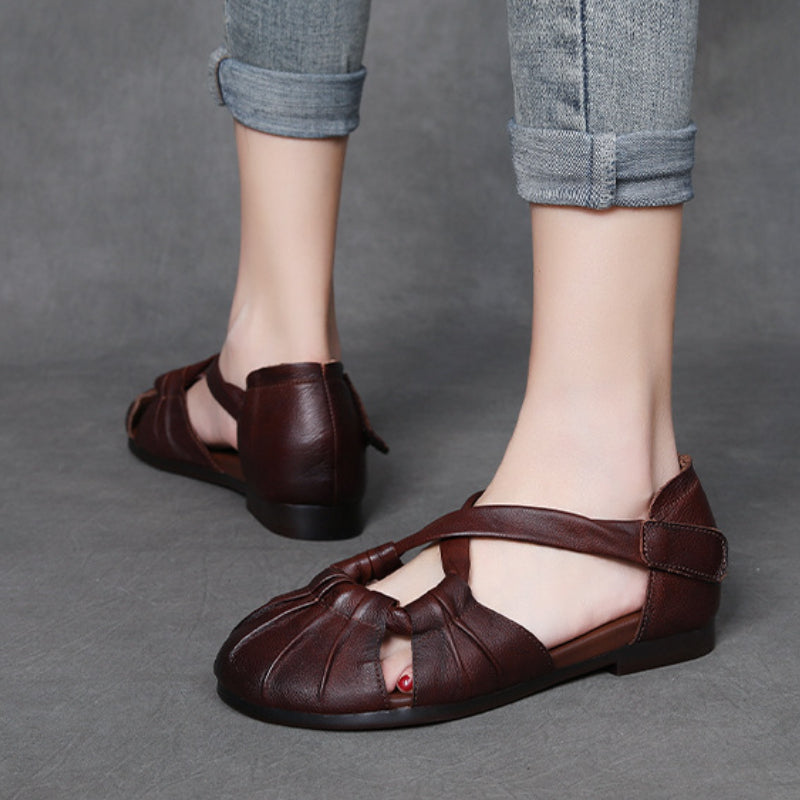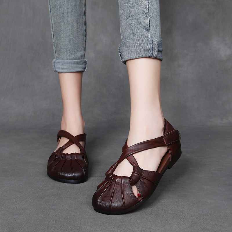 Women's Flat Sandals, Cowhide Soft Sole Casual Leather Sandals