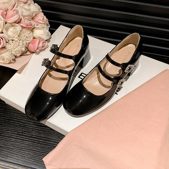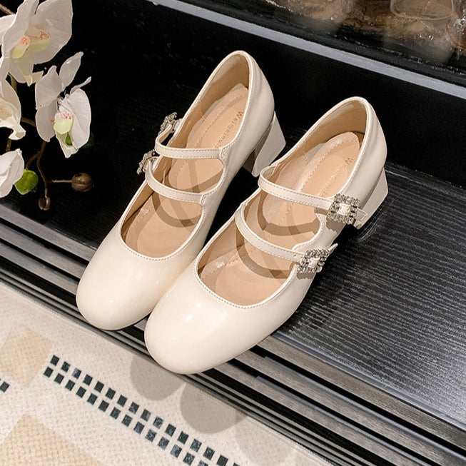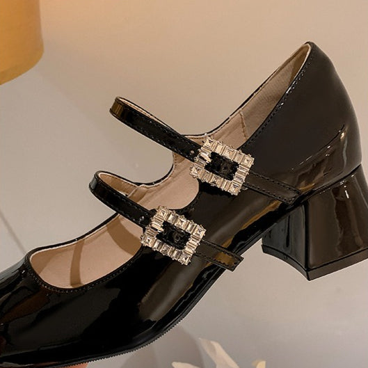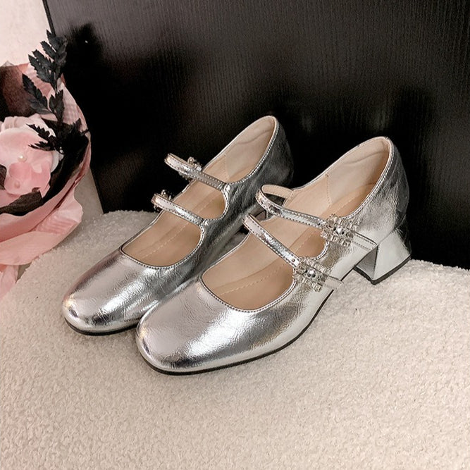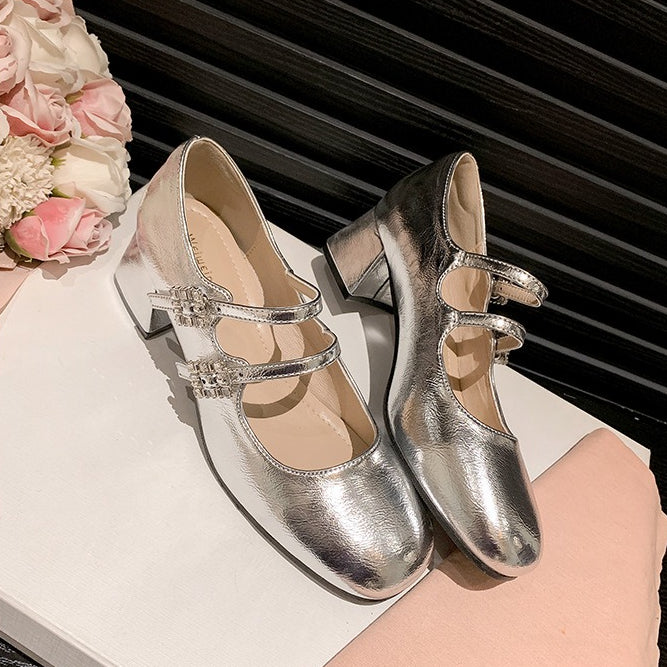 Elevate your everyday look with these enchanting French-inspired Mary Jane heels. Designed for the modern woman who values both elegance and comfort, these dainty silver rhinestone-adorned shoes feature a sturdy 3-5cm block heel that adds height without sacrificing stability.