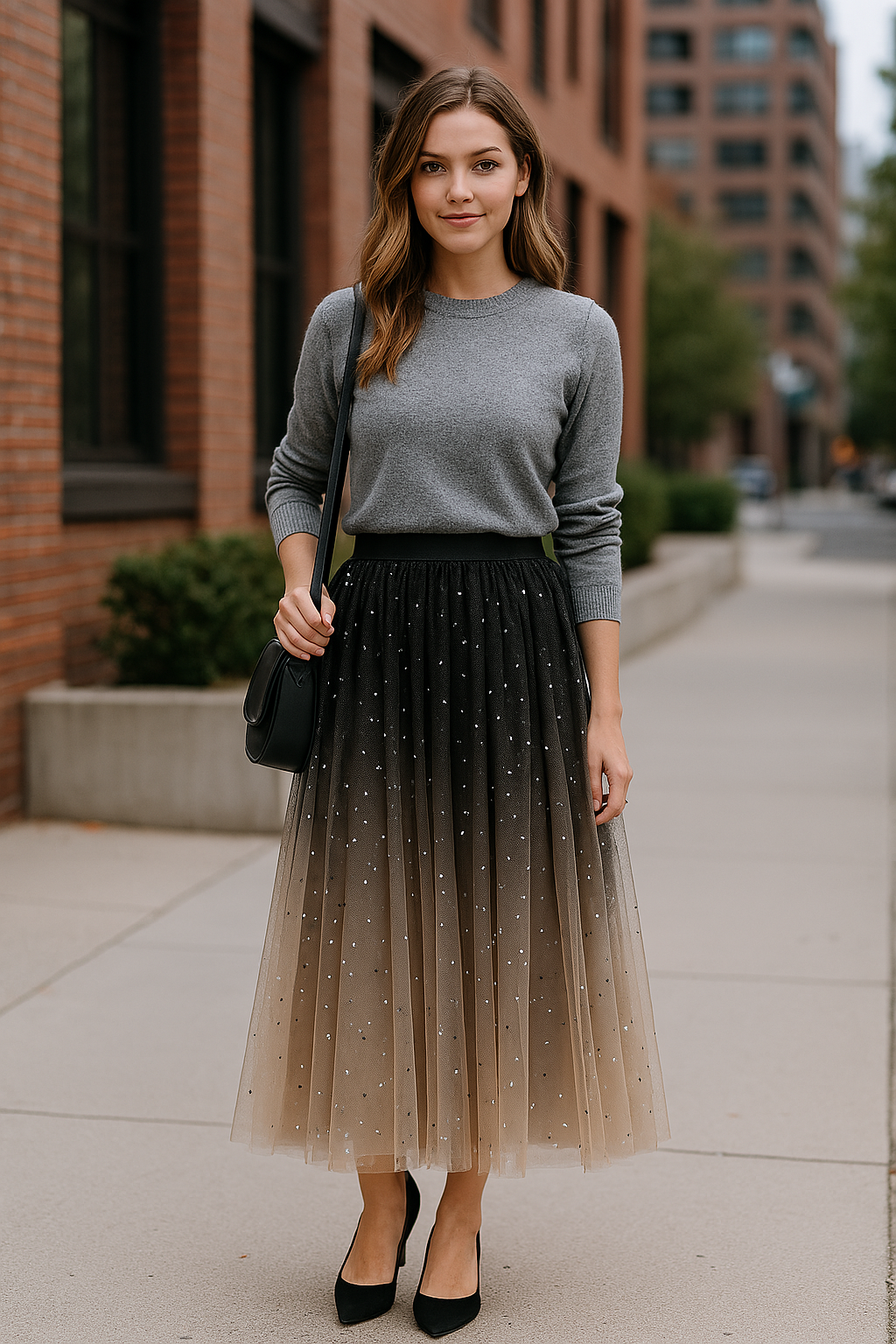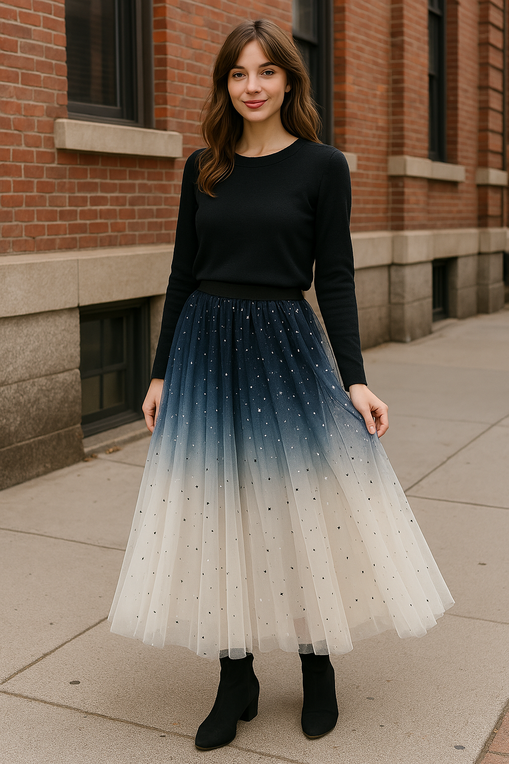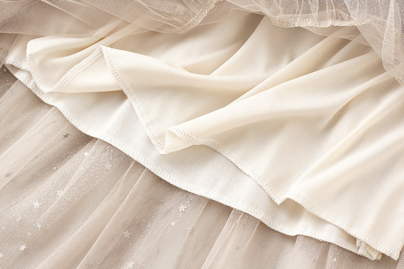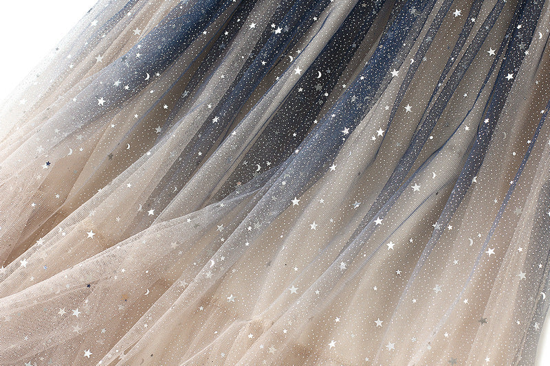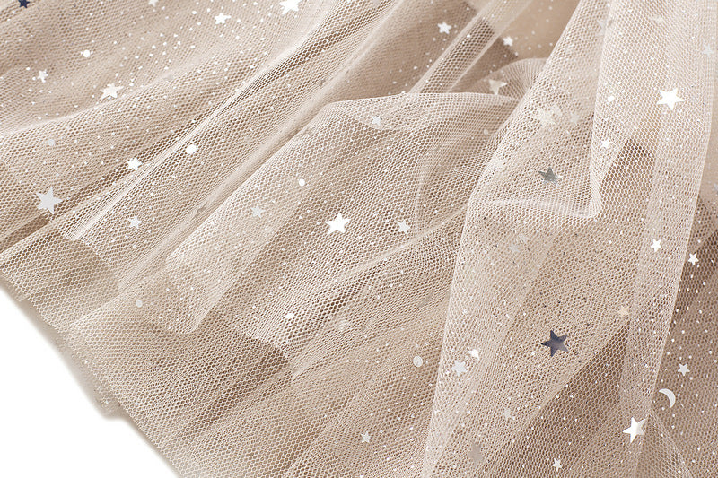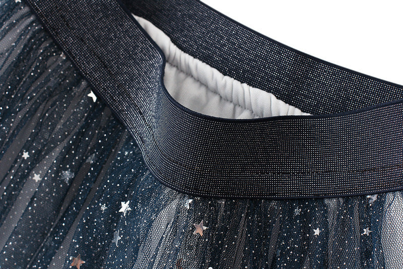 Starry Mesh Tulle Skirt with Gradient Layers and Elastic Waist