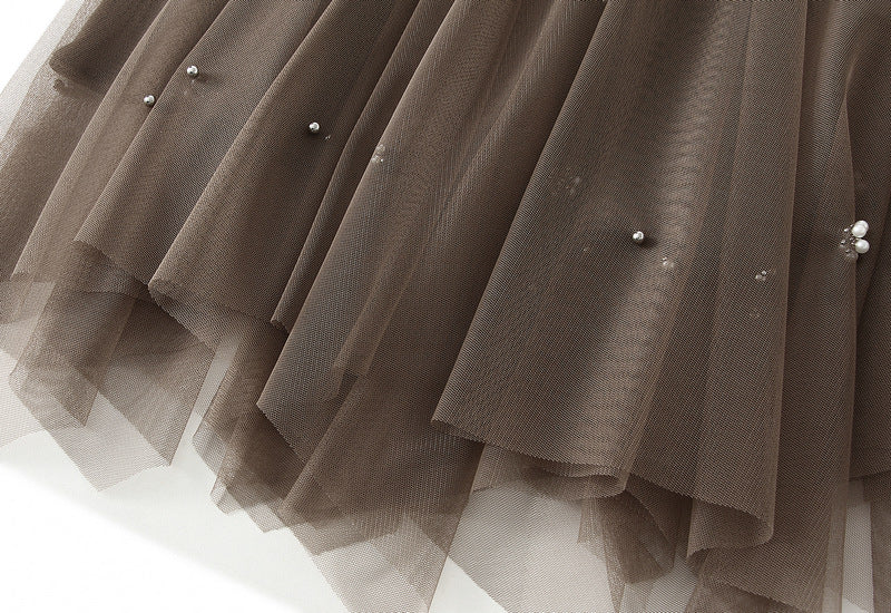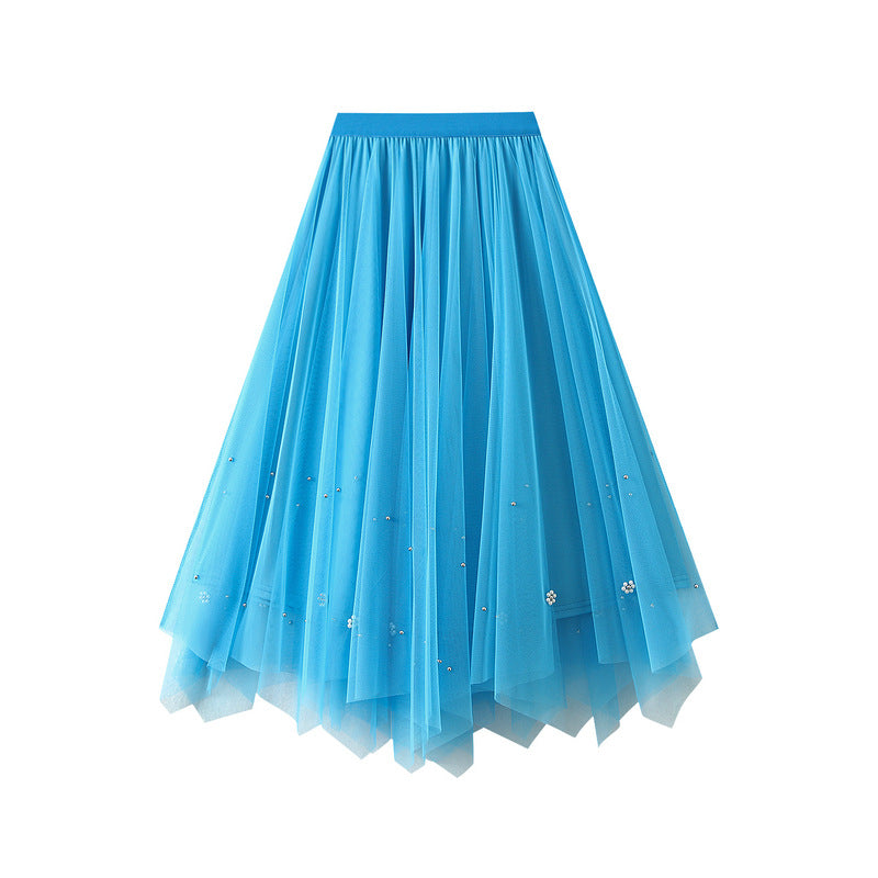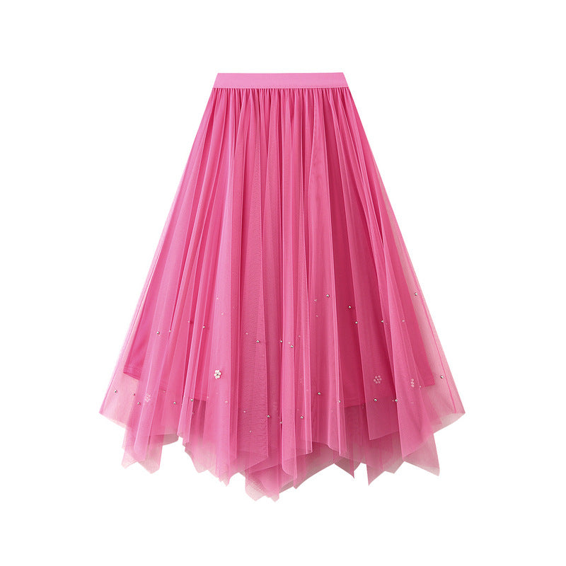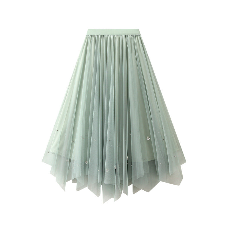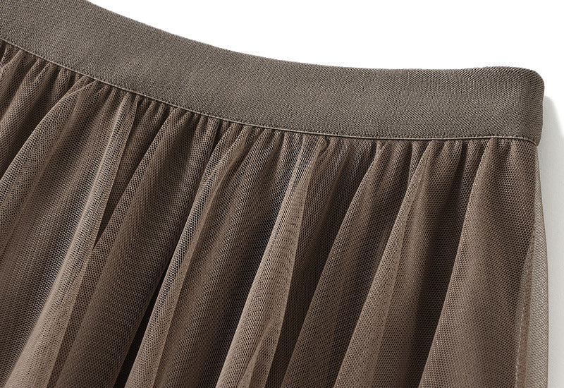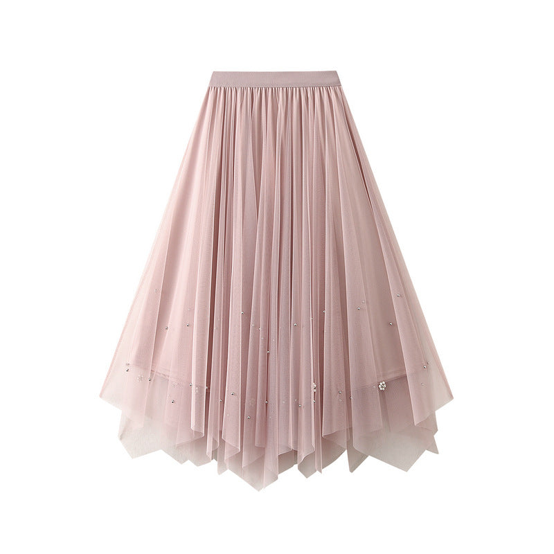 Women's Mesh Skirt High Waist Slimming Irregular Pleated Skirt
