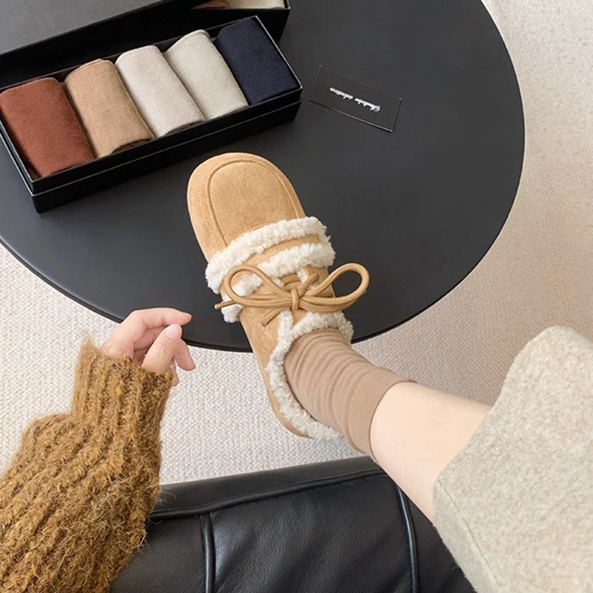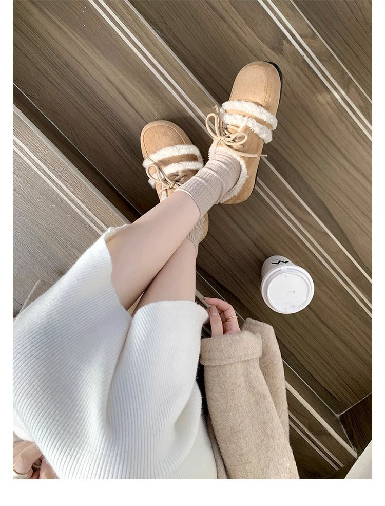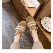 Women's Retro Color Matching Velvet Flat Shoes for Fall and Winter