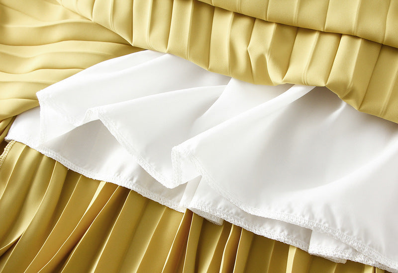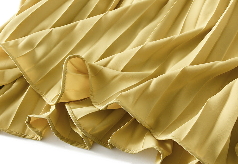 This Women's Spring and Summer Pleated Skirt brings effortless style and comfort for any occasion. Crafted from high-quality polyester fiber, the fabric offers durability and a soft, breathable feel perfect for warmer months. The pleated design creates a slimming silhouette, while the fresh and sweet style adds elegance and charm to your wardrobe. The versatile mid-length cut suits various outfits and is ideal for casual outings or dressed-up occasions. The soft, plain color complements any top, ensuring a seamless blend with your existing wardrobe pieces. Whether you're dressing up for a day out or enjoying a relaxed weekend, this pleated skirt is your go-to fashion choice.