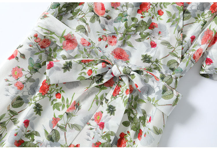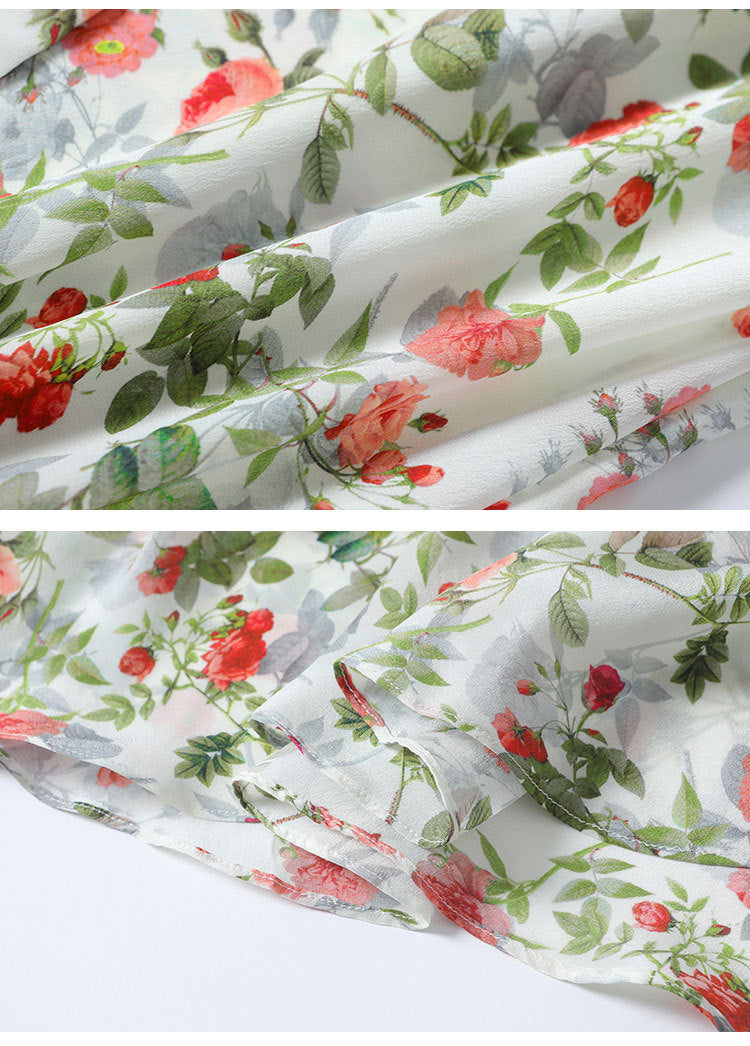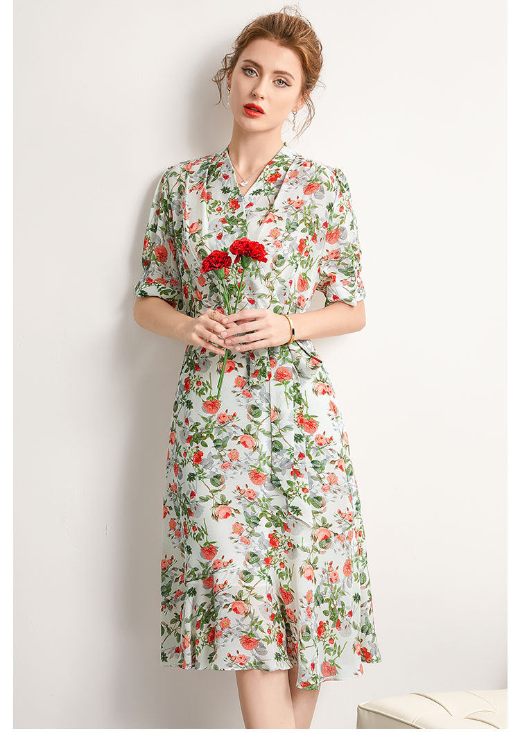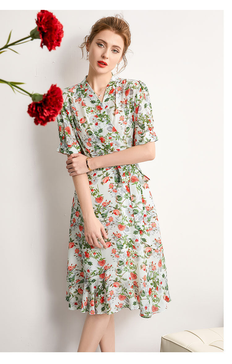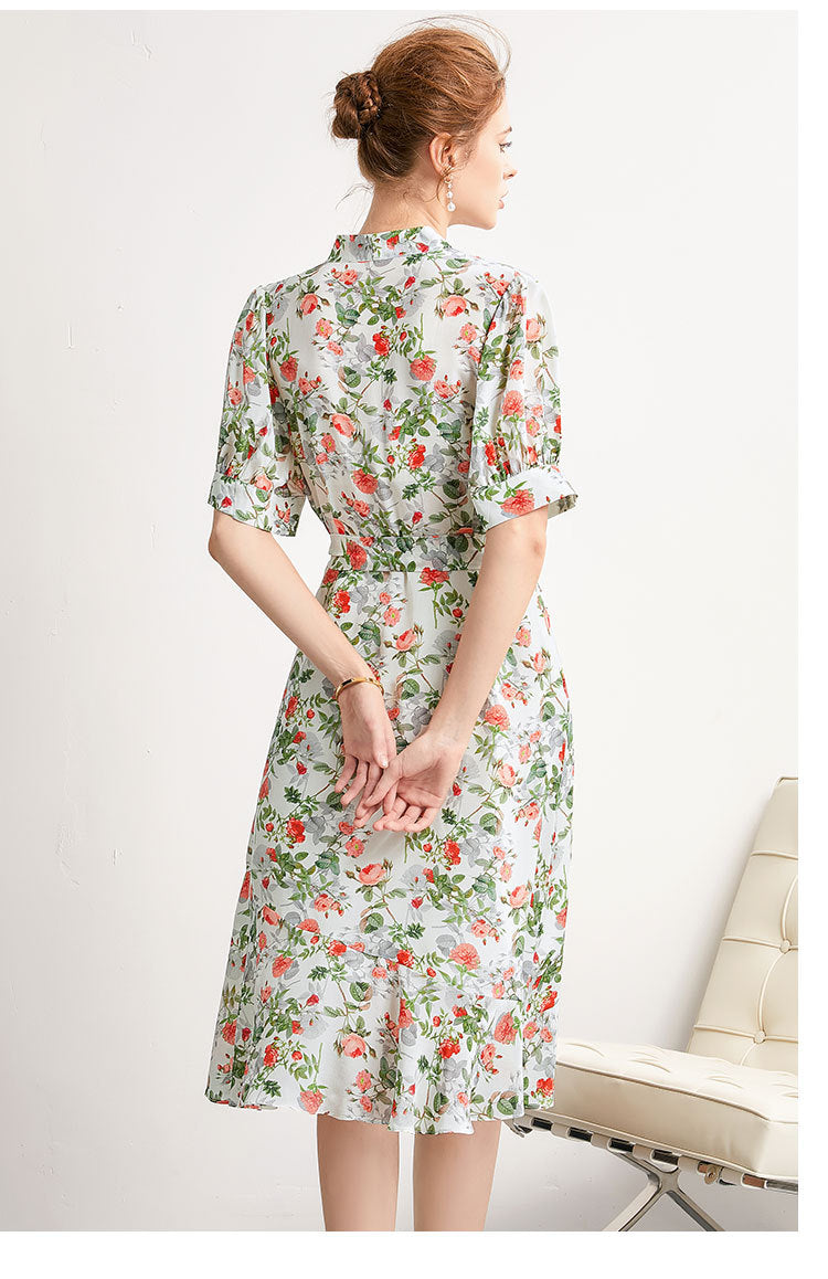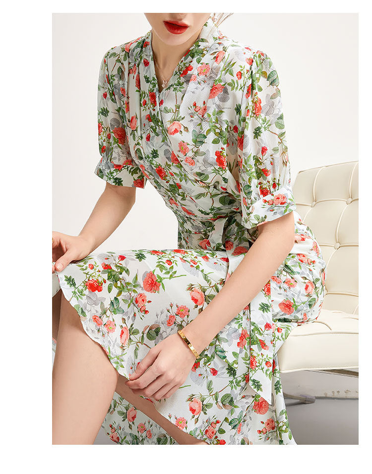 Women's Summer Silk Dress French Style Slim Printed Dress