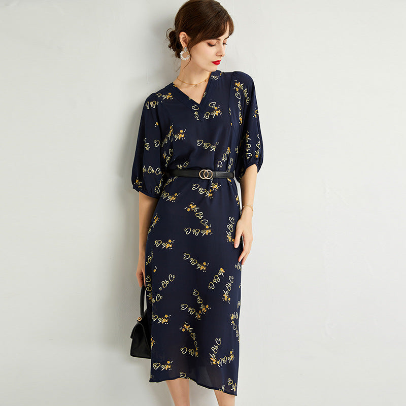 Women's Summer Silk Dress Large Size Loose Tie Tall Long Dress