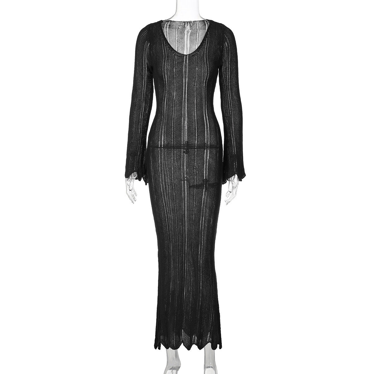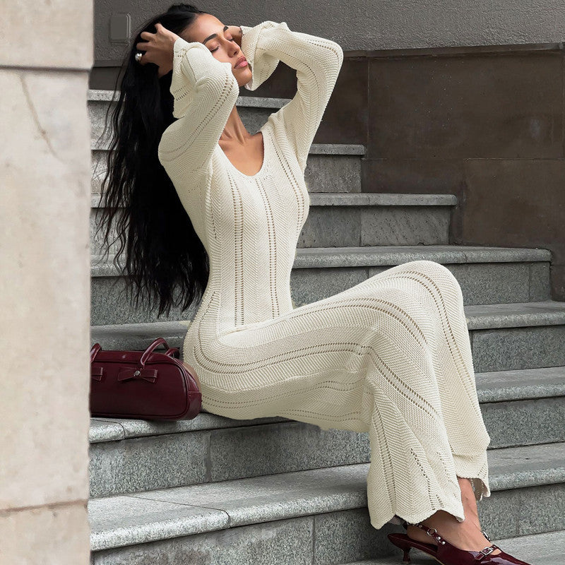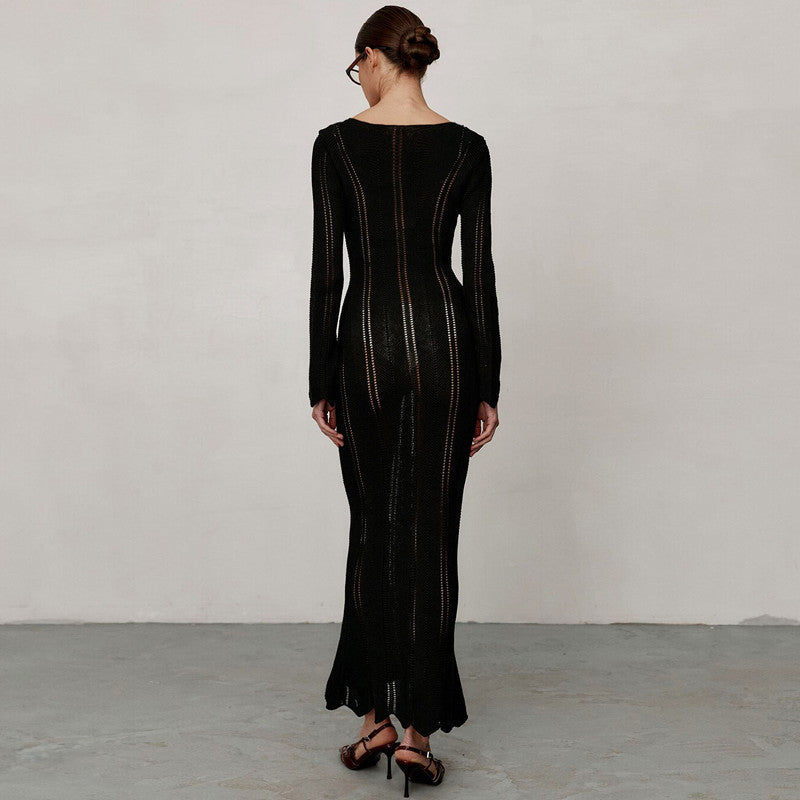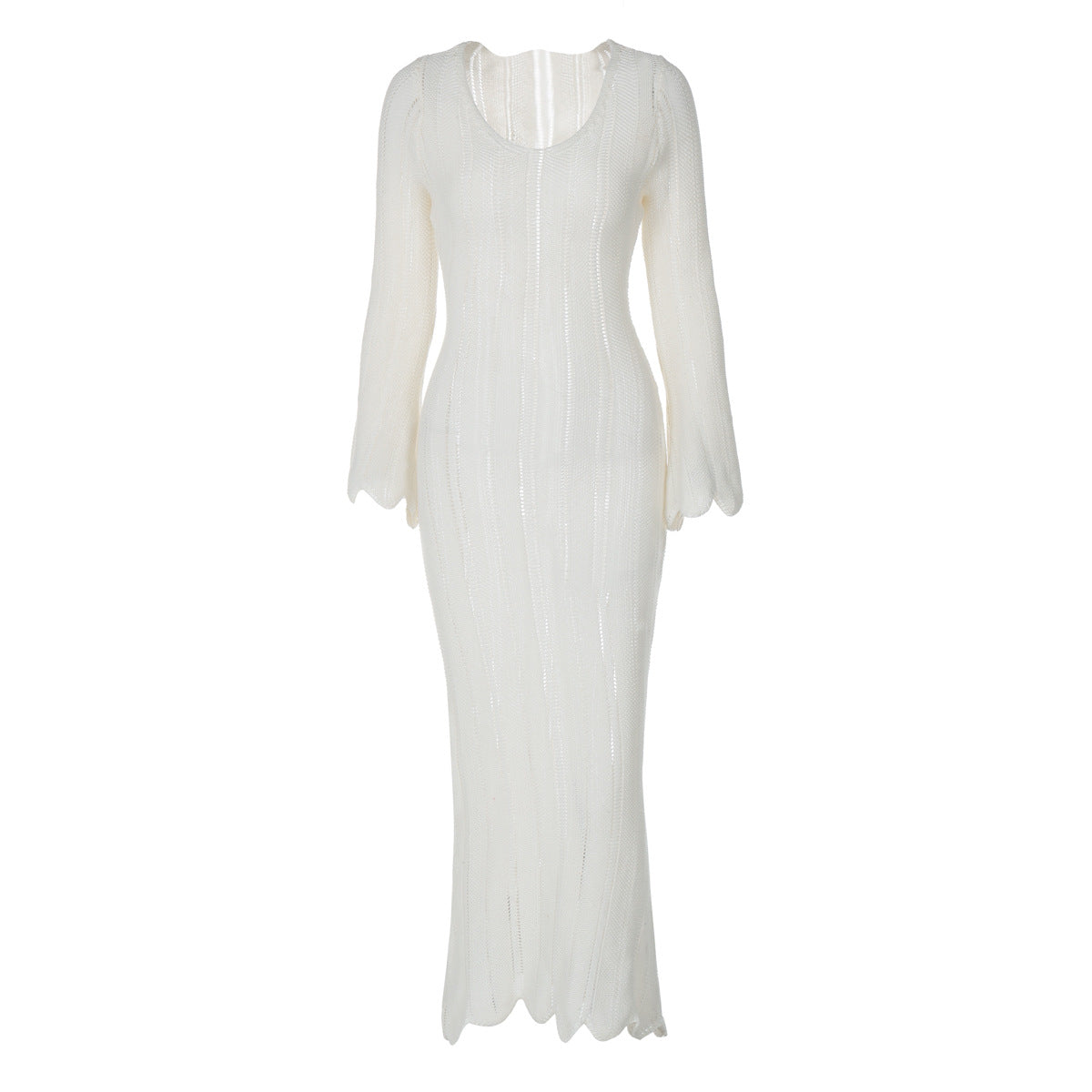 2025 Ribbed Knit Bodycon Dress with U-Neck and Long Sleeves